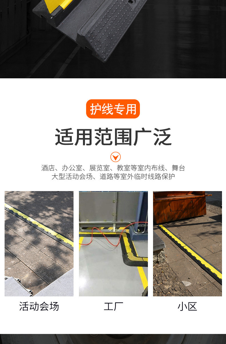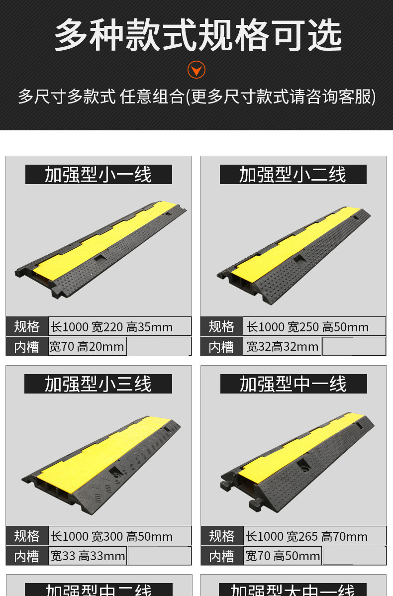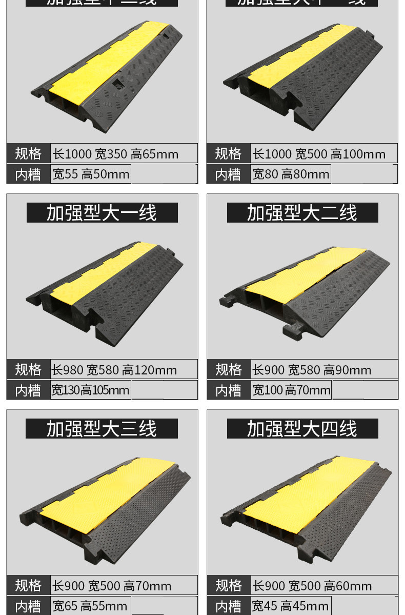 3.线槽减速带产品由于材质的原因,尺寸会有偏差,长度会有3-5cm误差,高度0.5cm误差,如要求较高不能接受的亲,请不要拍下。或者选择本店优质橡胶线槽。如因尺寸的问题,来回运费由买家承担。拍下即默认尺寸偏差的。