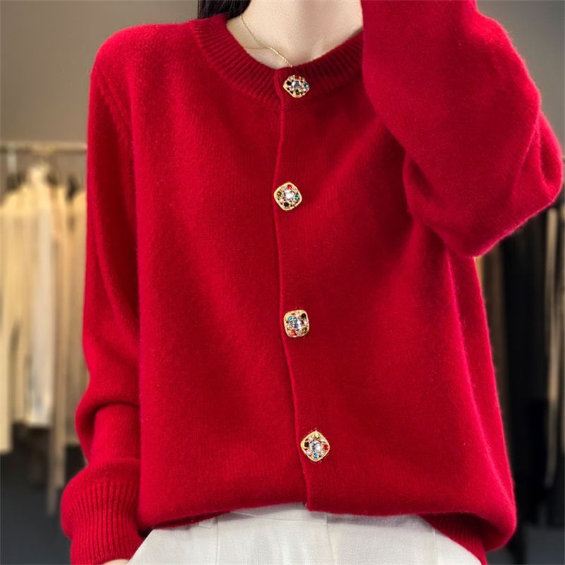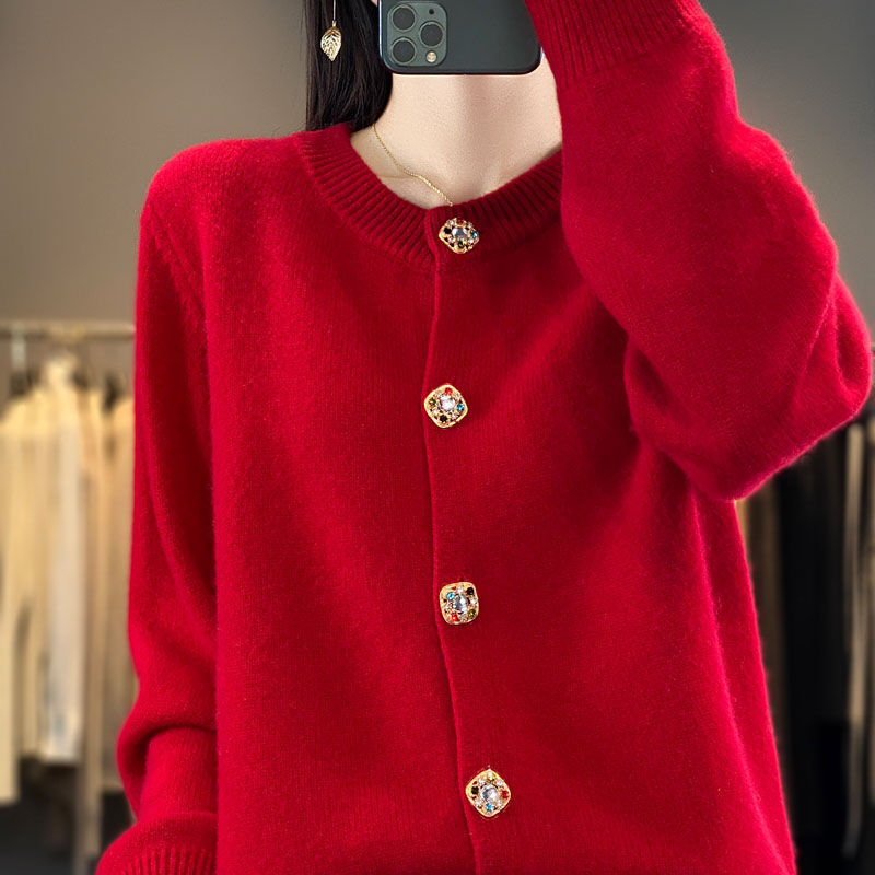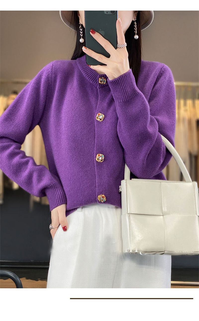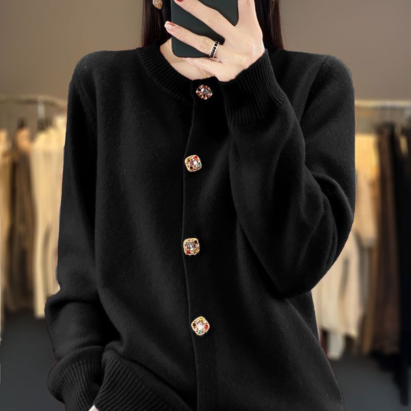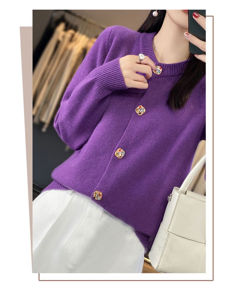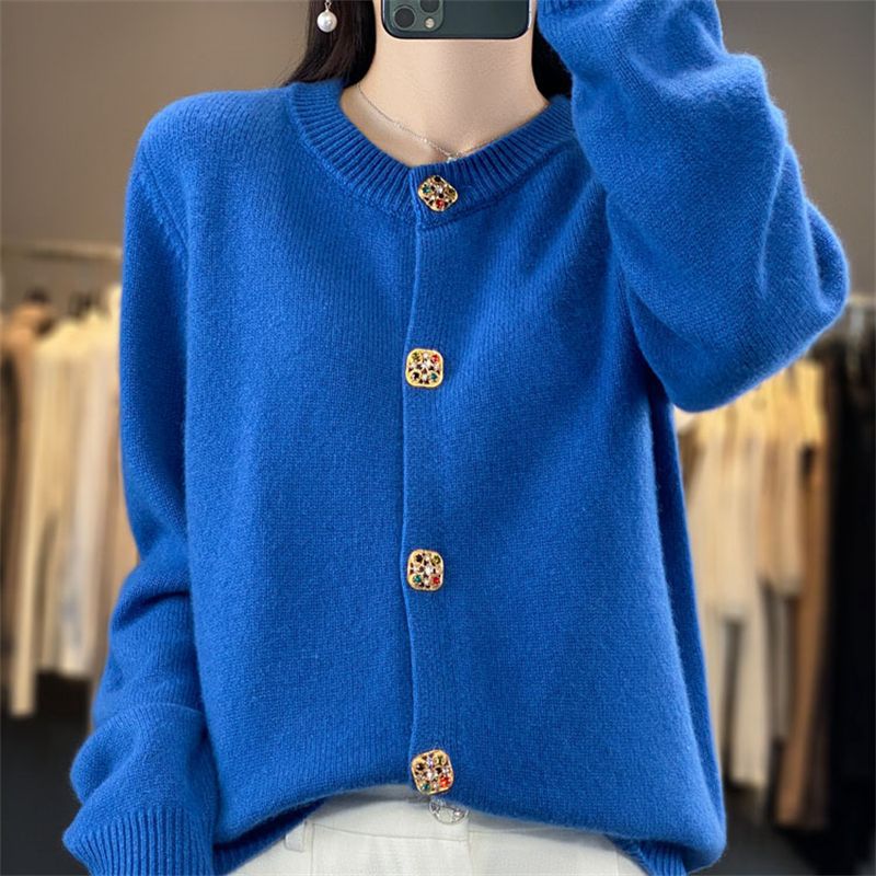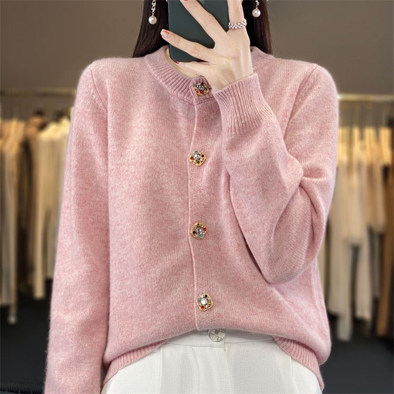 针织衫2025年秋新款开衫女圆领宽松毛衣外套针织洋气外搭针织衫女