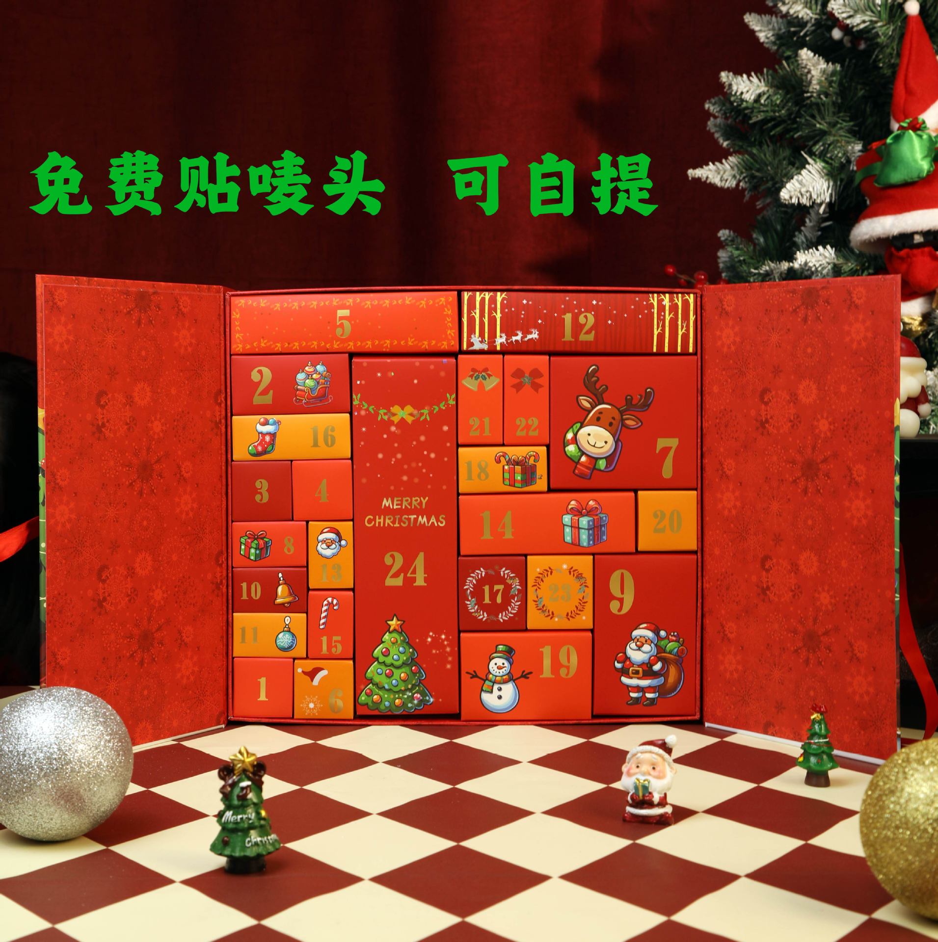 圣诞倒数日历礼盒倒计时盲盒平安夜跨年惊喜双开门包装盒创意空盒