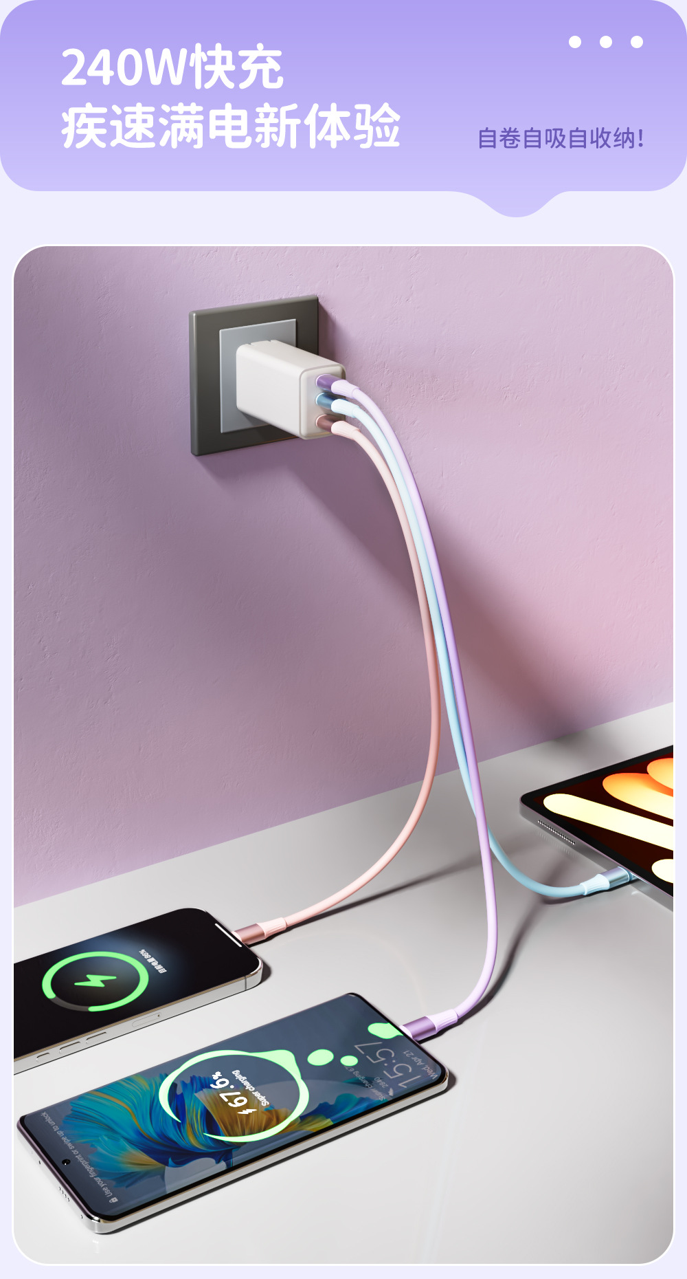 颜色 240w硅胶磁吸数据线【绿色】,240w硅胶磁吸数据线【蓝色】,240w硅胶磁吸数据线【紫色】,240w硅胶磁吸数据线【粉色】,240w硅胶磁吸数据线【米白色】