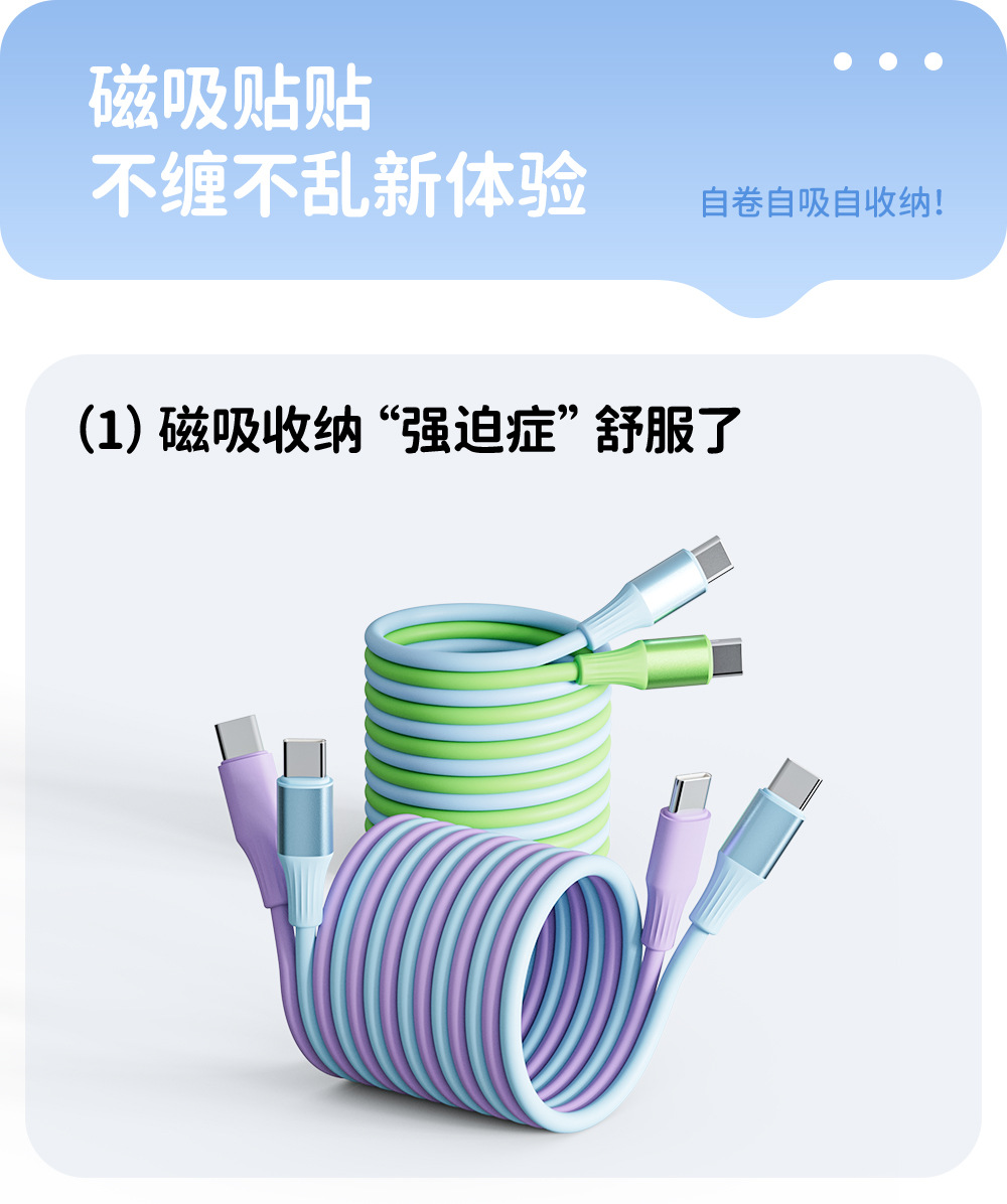 【实力工厂】倍魔多彩磁吸收纳数据线适用于苹果华为安卓超级快充