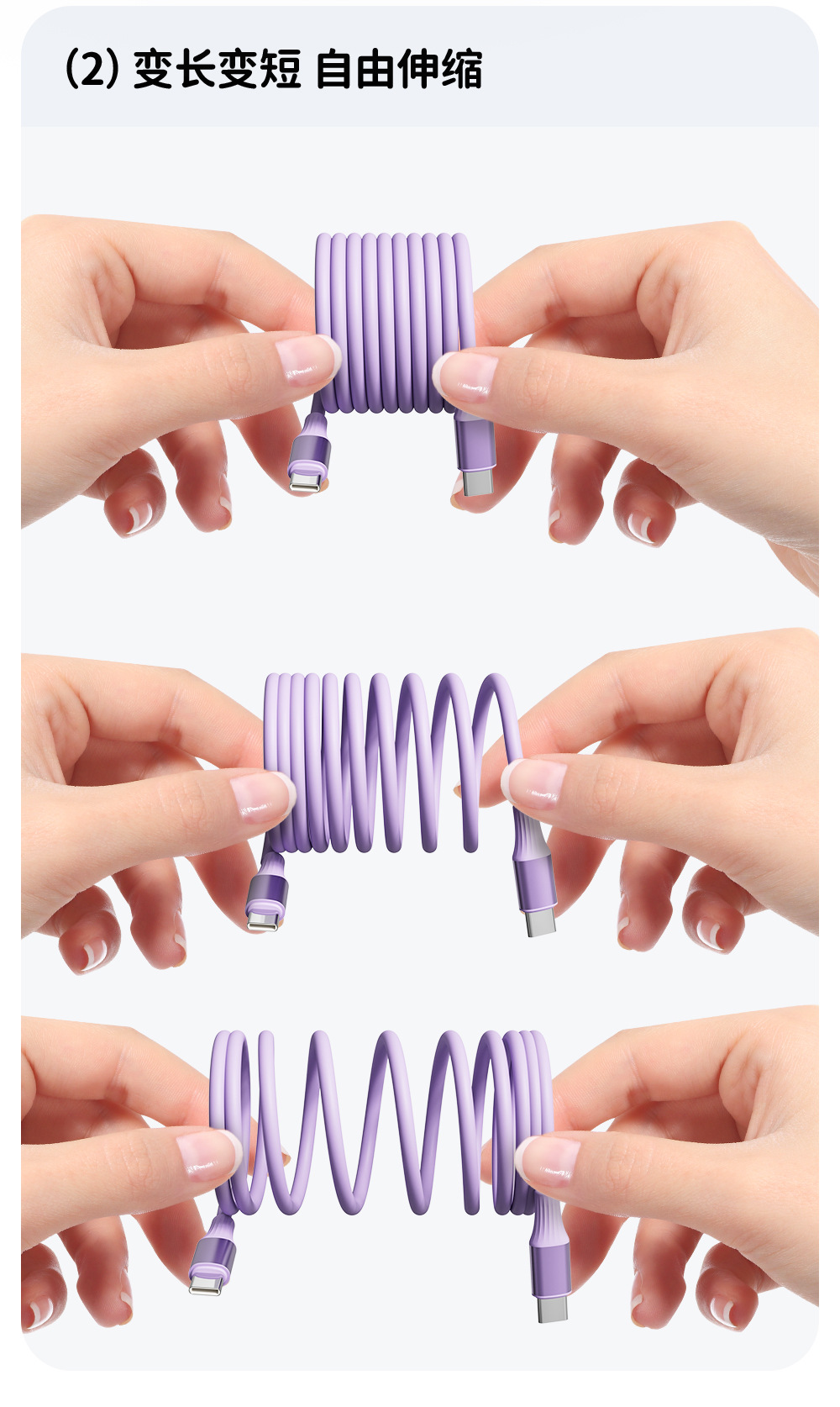 【源工場】ライトニング倍速モーションスプリング伸縮式65W 4in1超急速充電データケーブル(Apple対応)