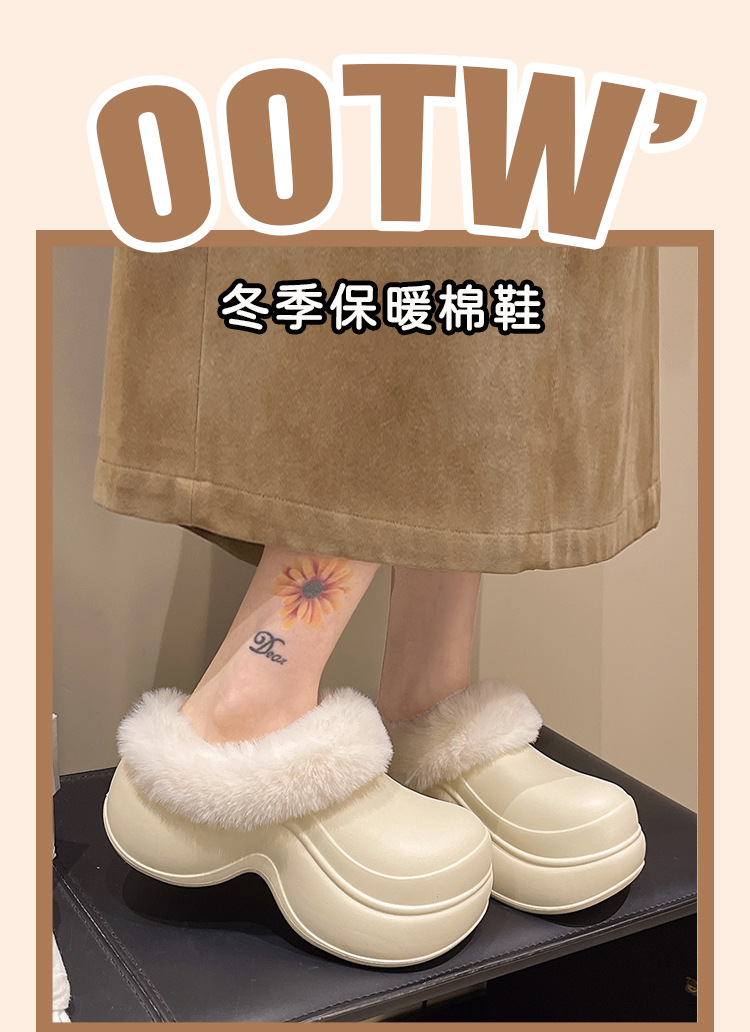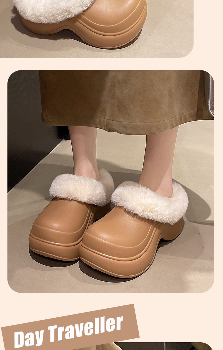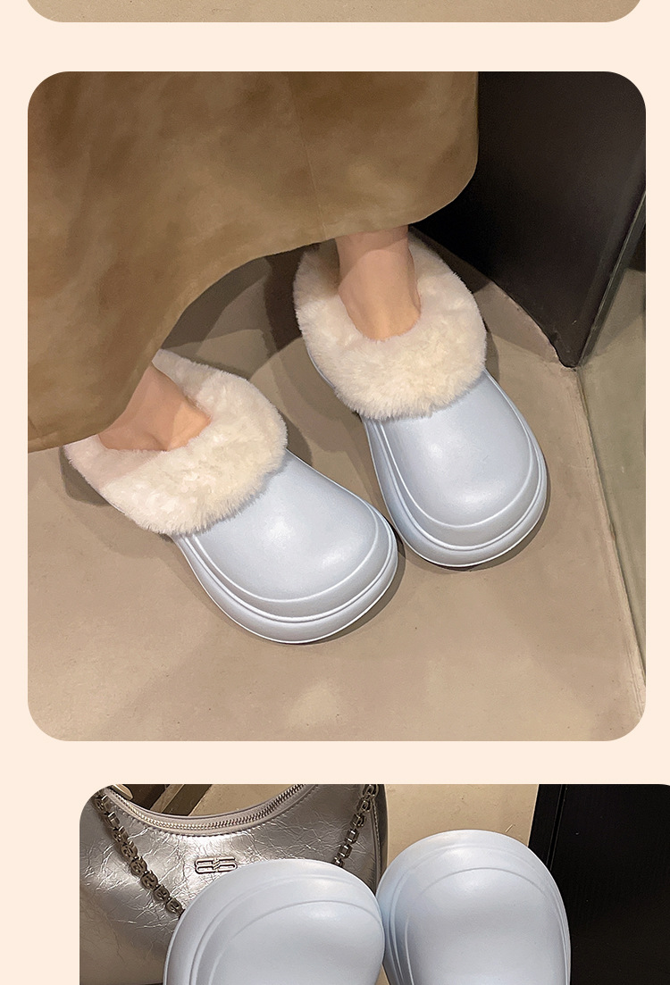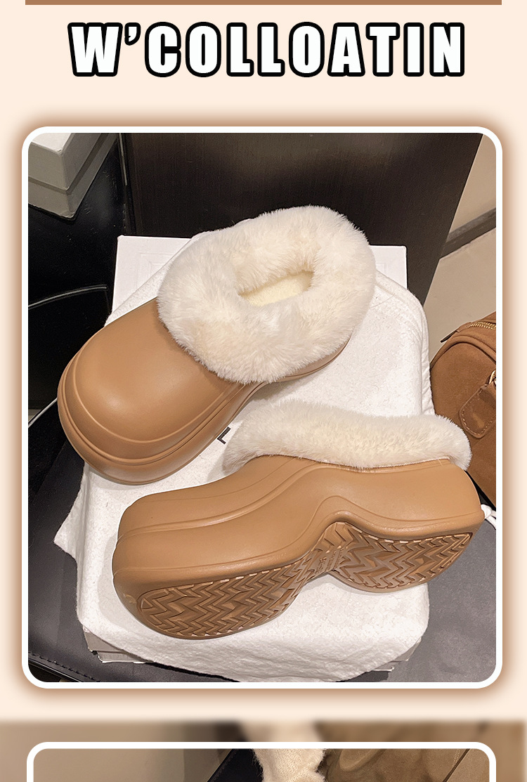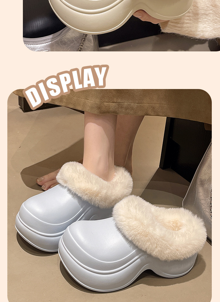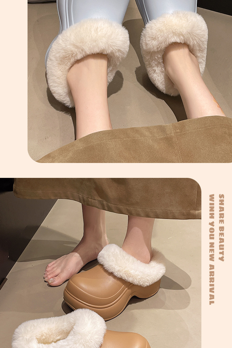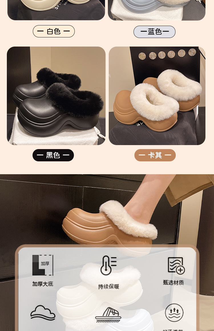 5.0cm加绒洞洞鞋女冬天外穿防滑防水毛绒拖鞋冬季厚底保暖毛拖鞋