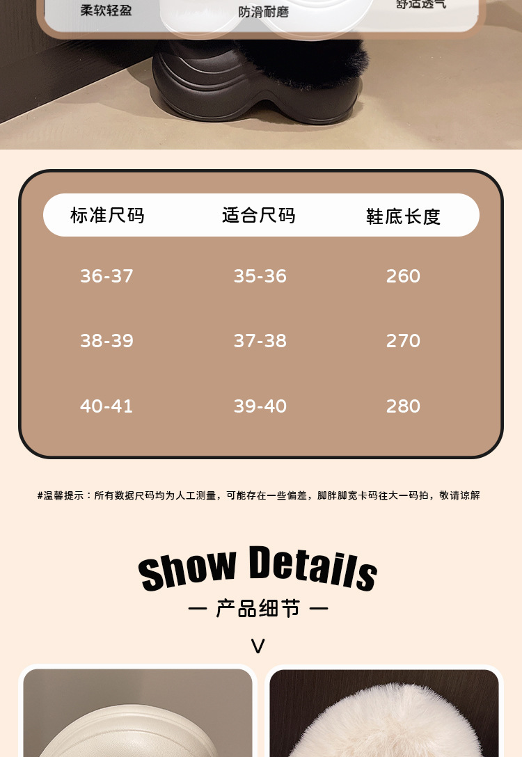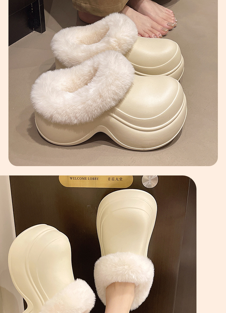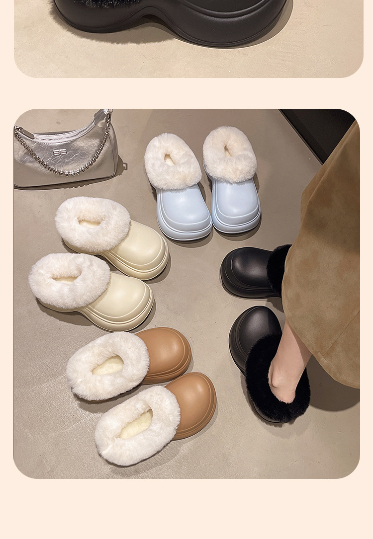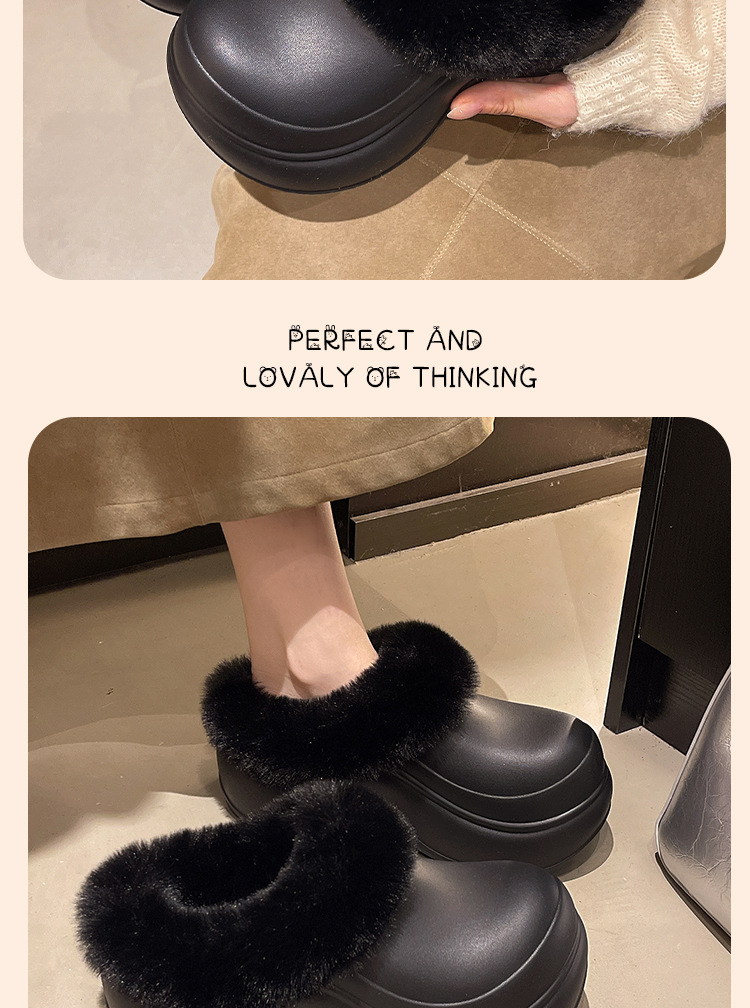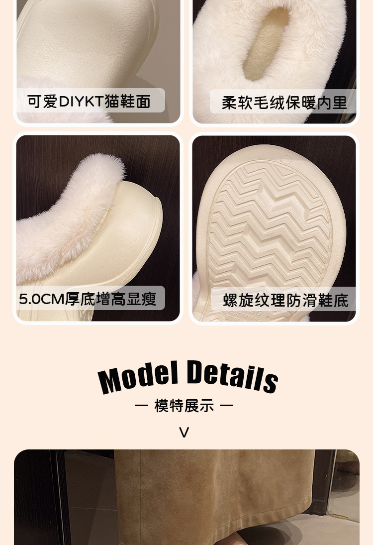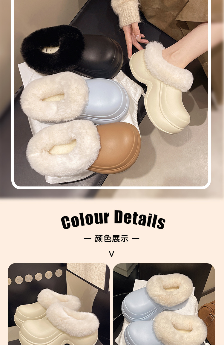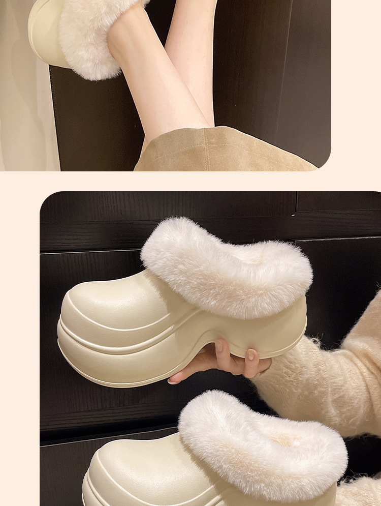 5.0cm加绒洞洞鞋女冬天外穿防滑防水毛绒拖鞋冬季厚底保暖毛拖鞋