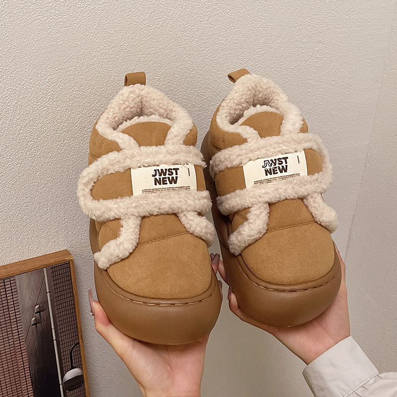 ネットで話題の厚底雪靴、裏起毛で暖かい、レディース冬用2025年新作、外履きにも使える万能、身長アップ効果のある柔らかい底の綿靴