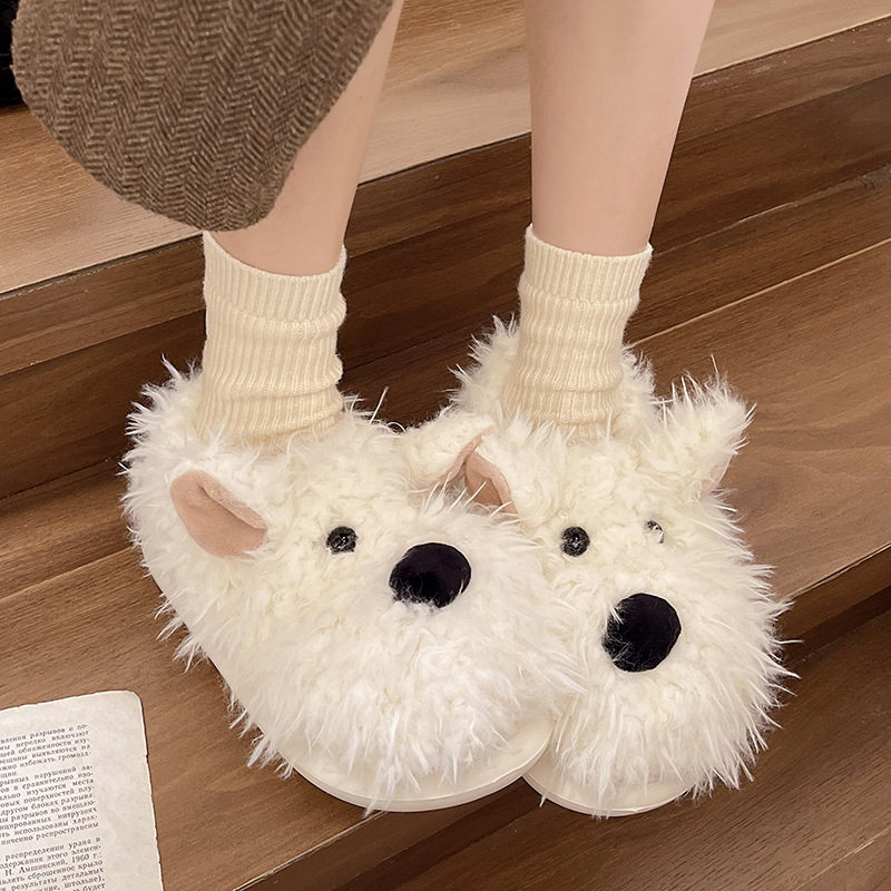 【正規品】ウエストハイランド かわいい 室内 厚底 カップル 草犬 綿スリッパ レディース 暖かい 秋冬 スリッパ
