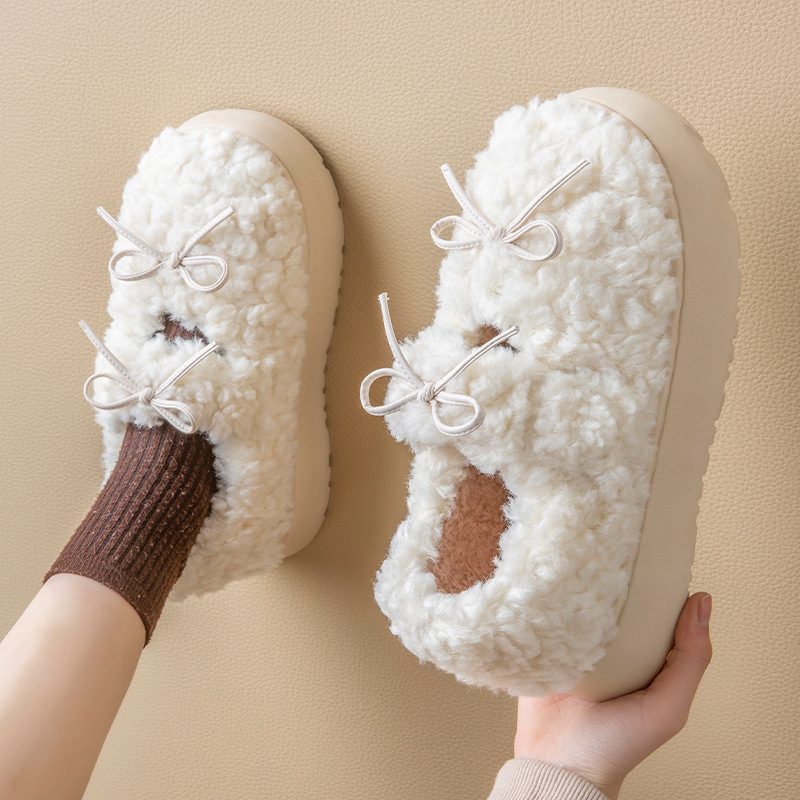 2025年新作ホームファッション綿スリッパ、ガーリー系レディースシューズ、暖かいマジックテープ綿スリッパ、秋冬用リボン付き