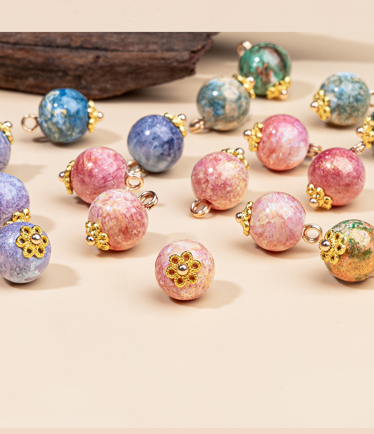 旗袍纽头油画风中式纽扣彩色琉璃珠金属花托圆珠扣复古马甲开衫扣