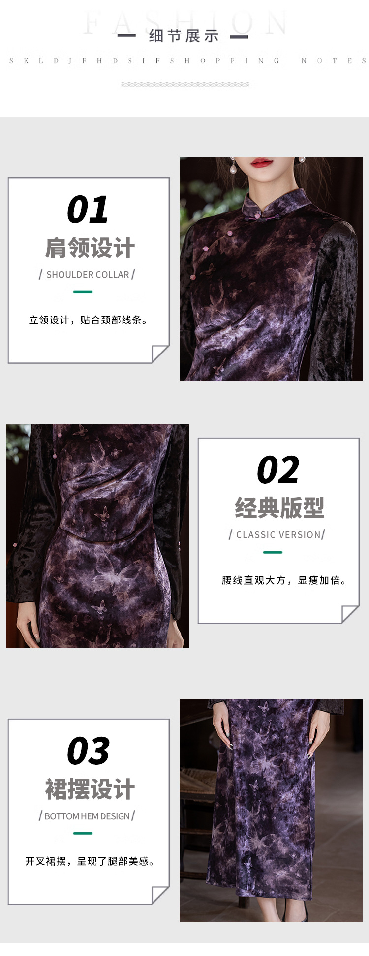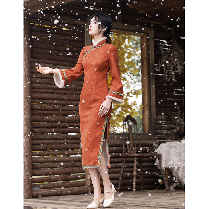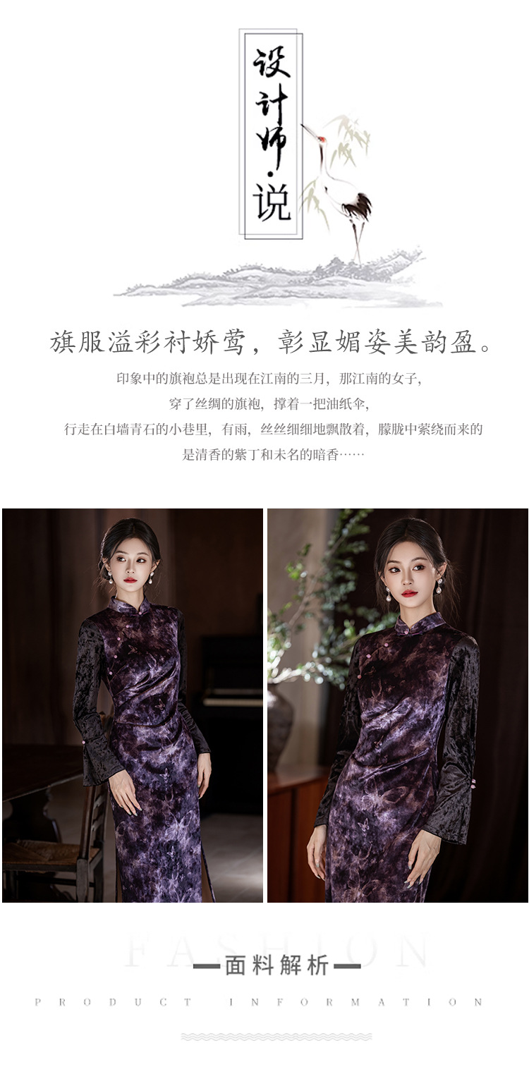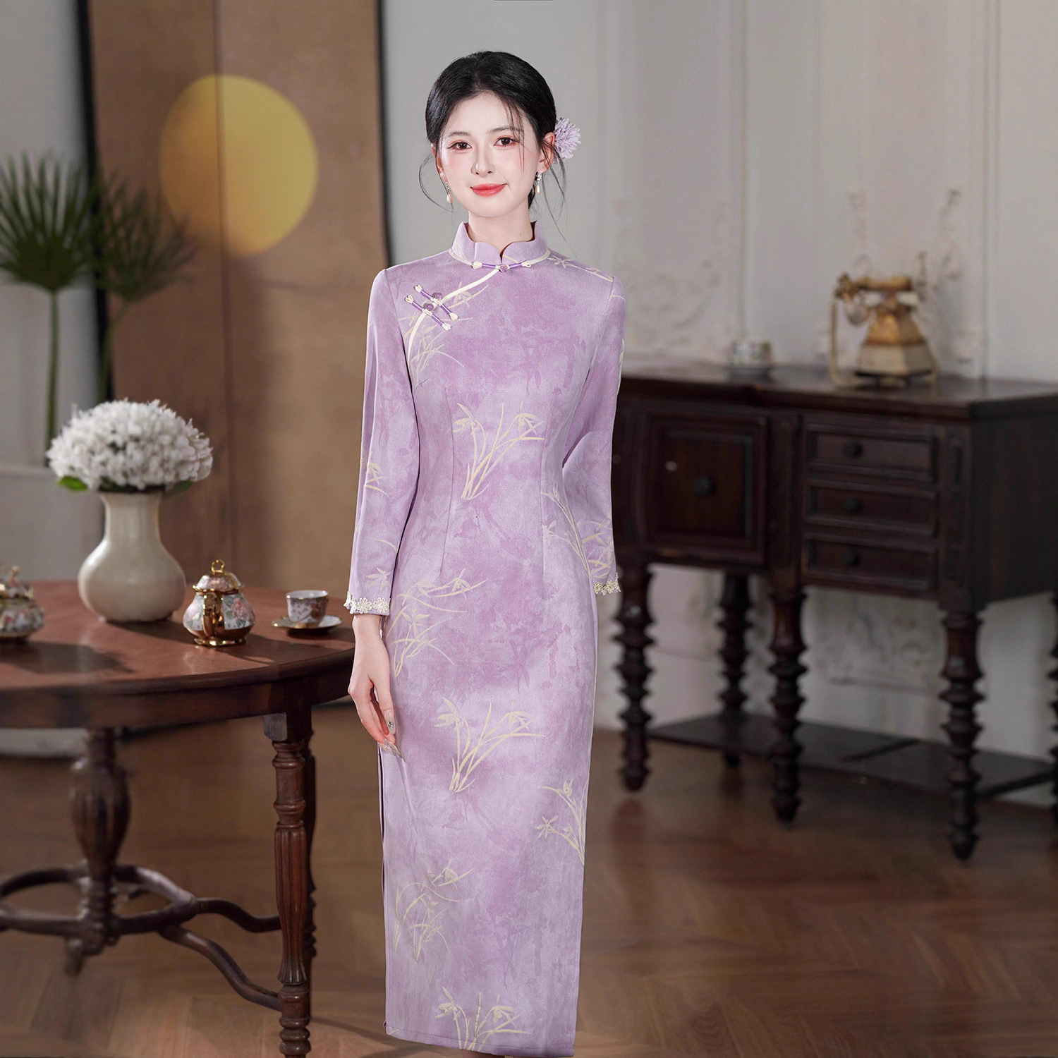 2025秋款新款日常通勤长款旗袍裙 秋冬淑女气质麂皮绒加绒显瘦旗