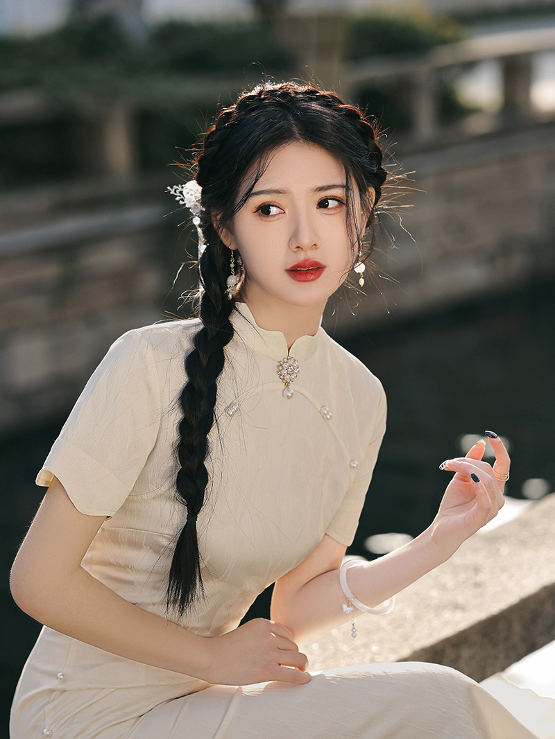 民国少女風の古法で着痩せ効果のある改良版旗袍、2025年春夏新作のジャカード織りロングワンピース