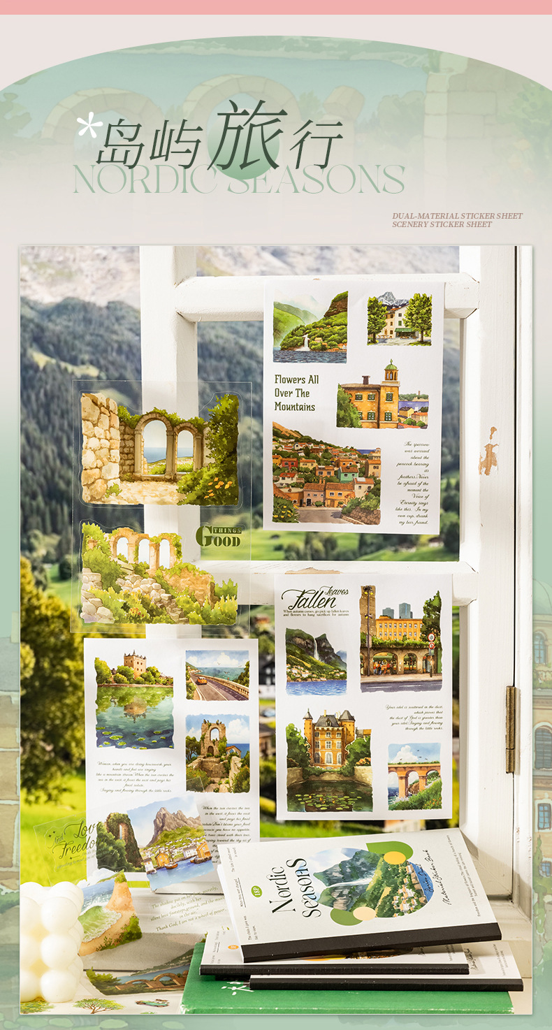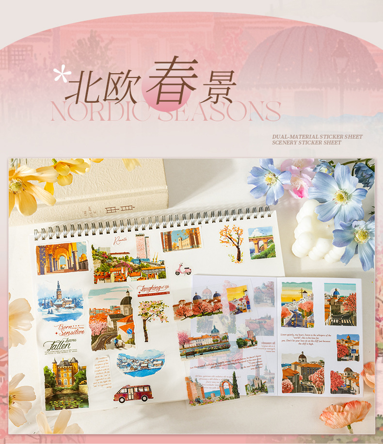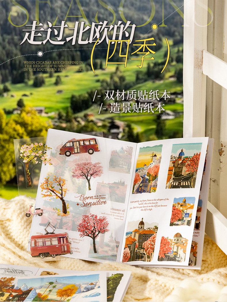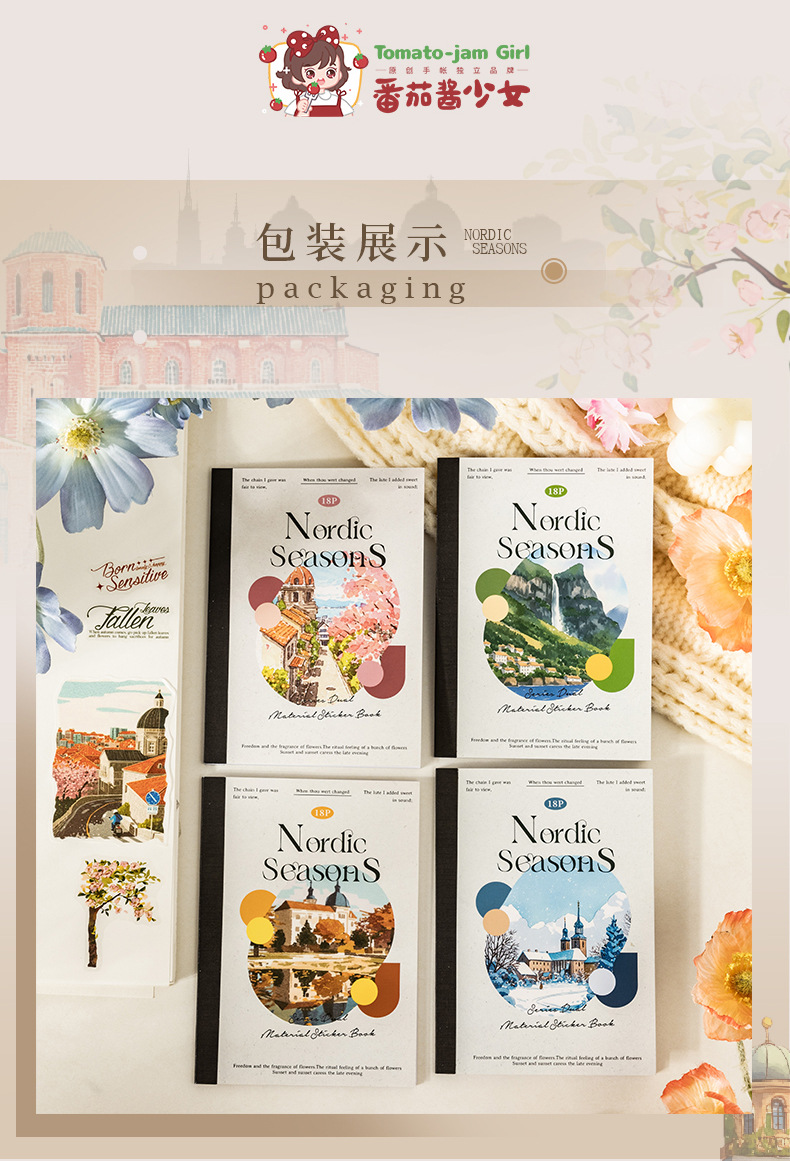 番茄酱少女双材质造景贴纸本走过北欧的四季系列手帐素材装饰拼贴