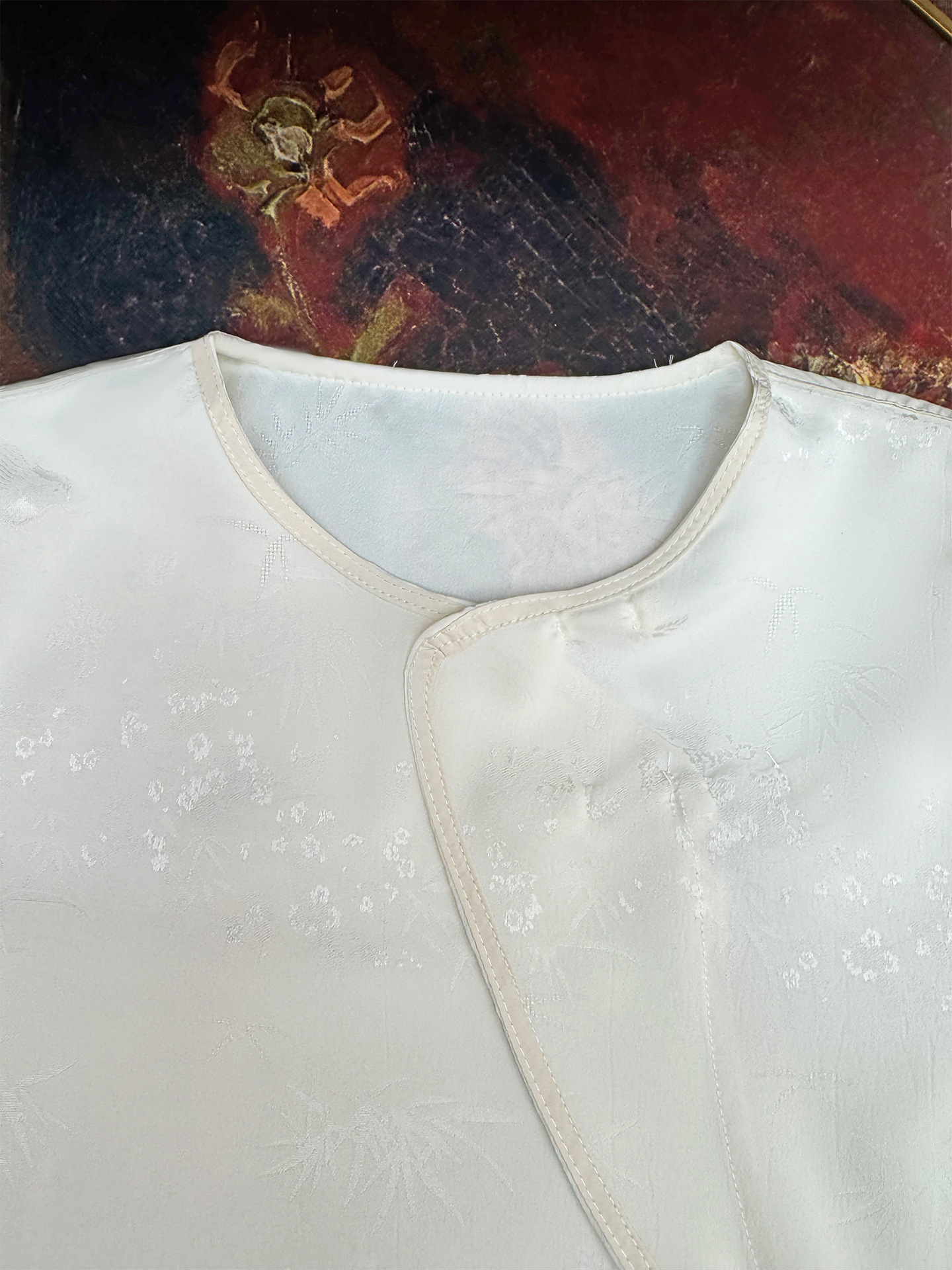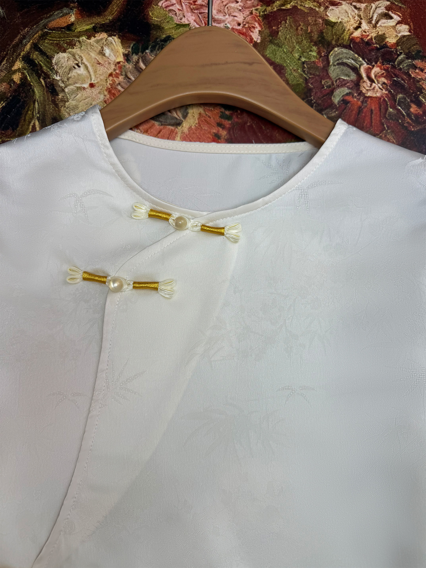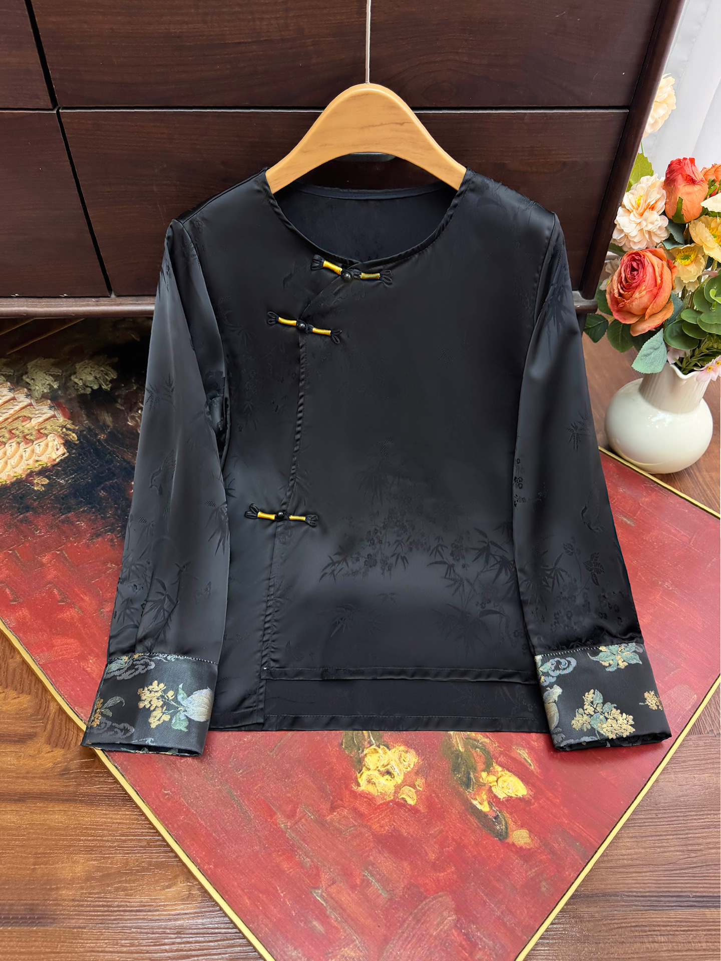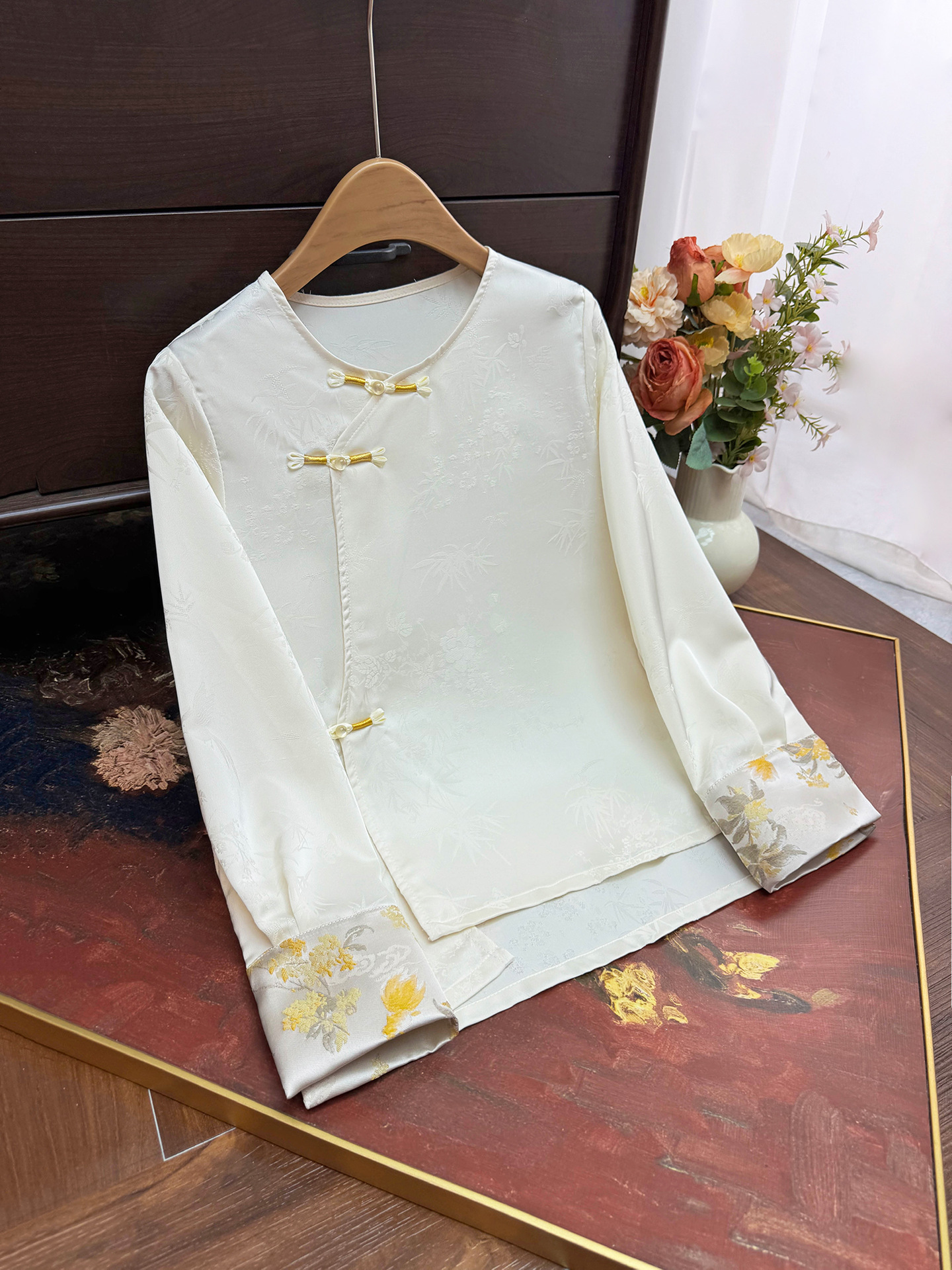 新中国式斜め襟シャツ2025年春新作高級人糸ジャカードレトロ国風百合シャツ上着