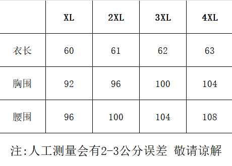 尺码 XL【建议90-110斤】,2XL【建议110-125斤】,3XL【建议125-135斤】,4XL【建议135-150斤】