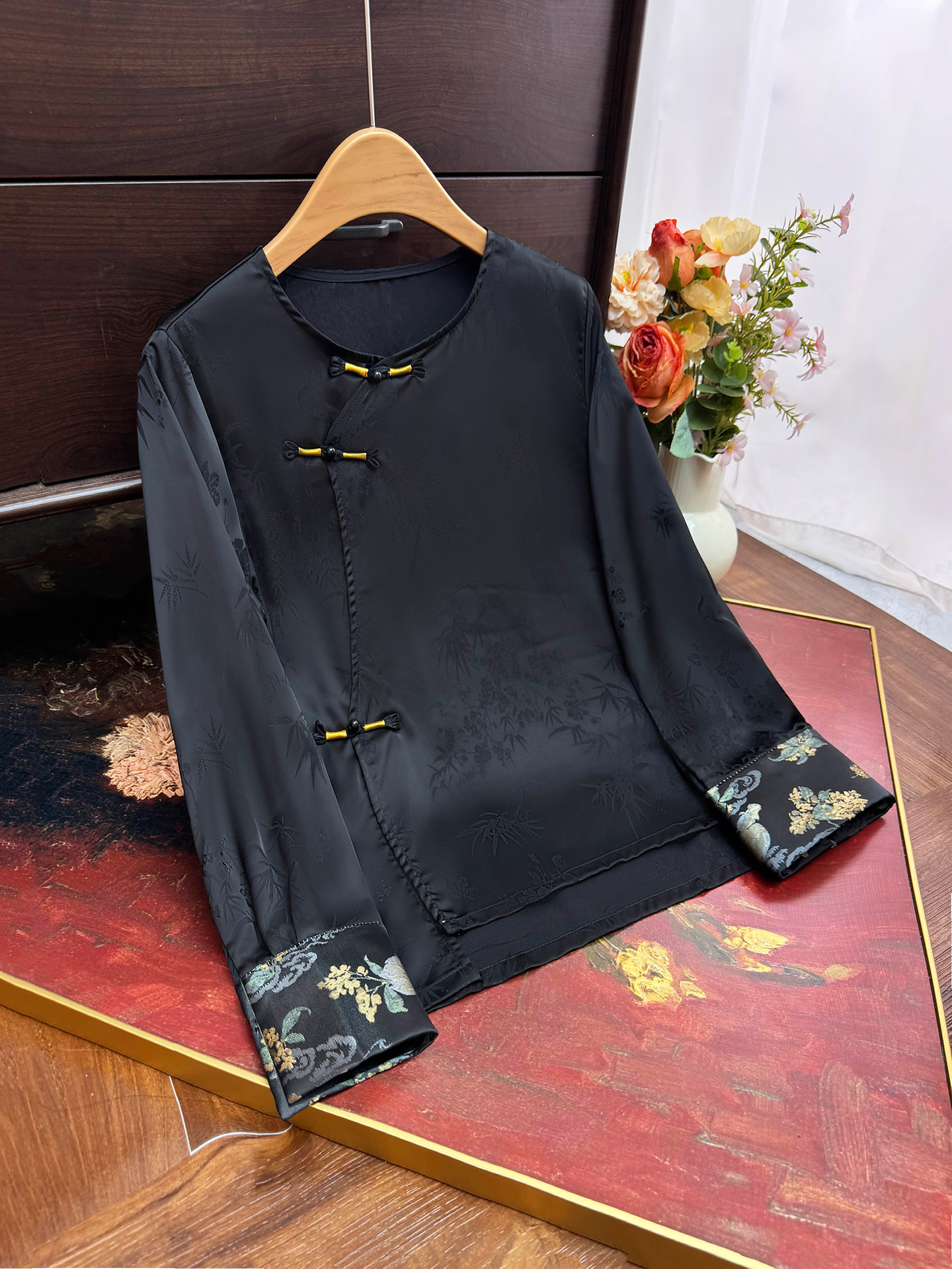 新中国式ジャカード人糸シャツ2025年春夏新作レトロ国風ファッションゆるい着痩せシャツ上着