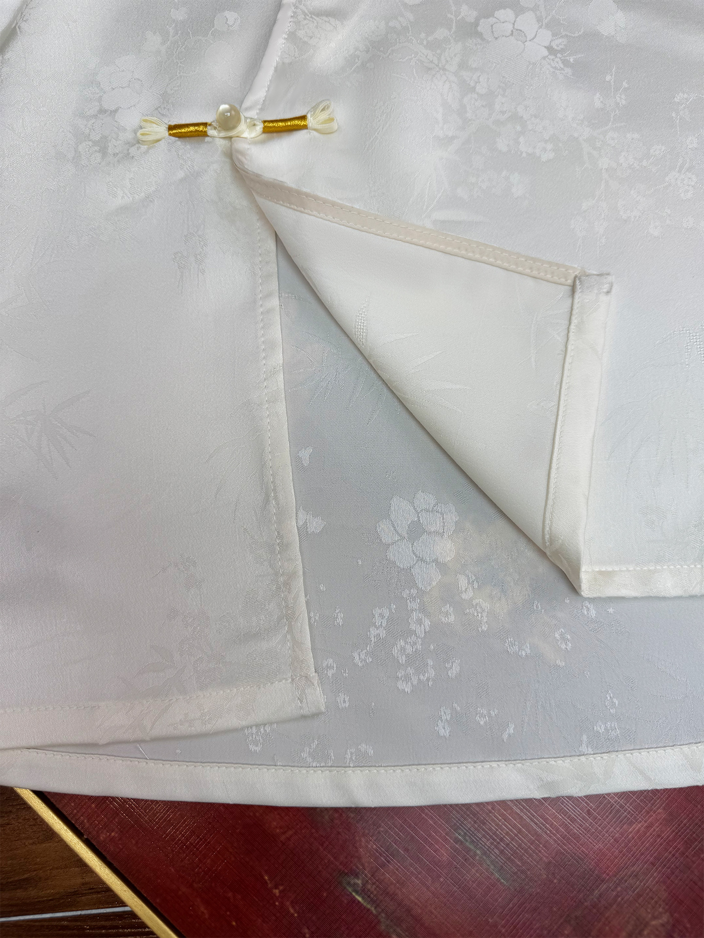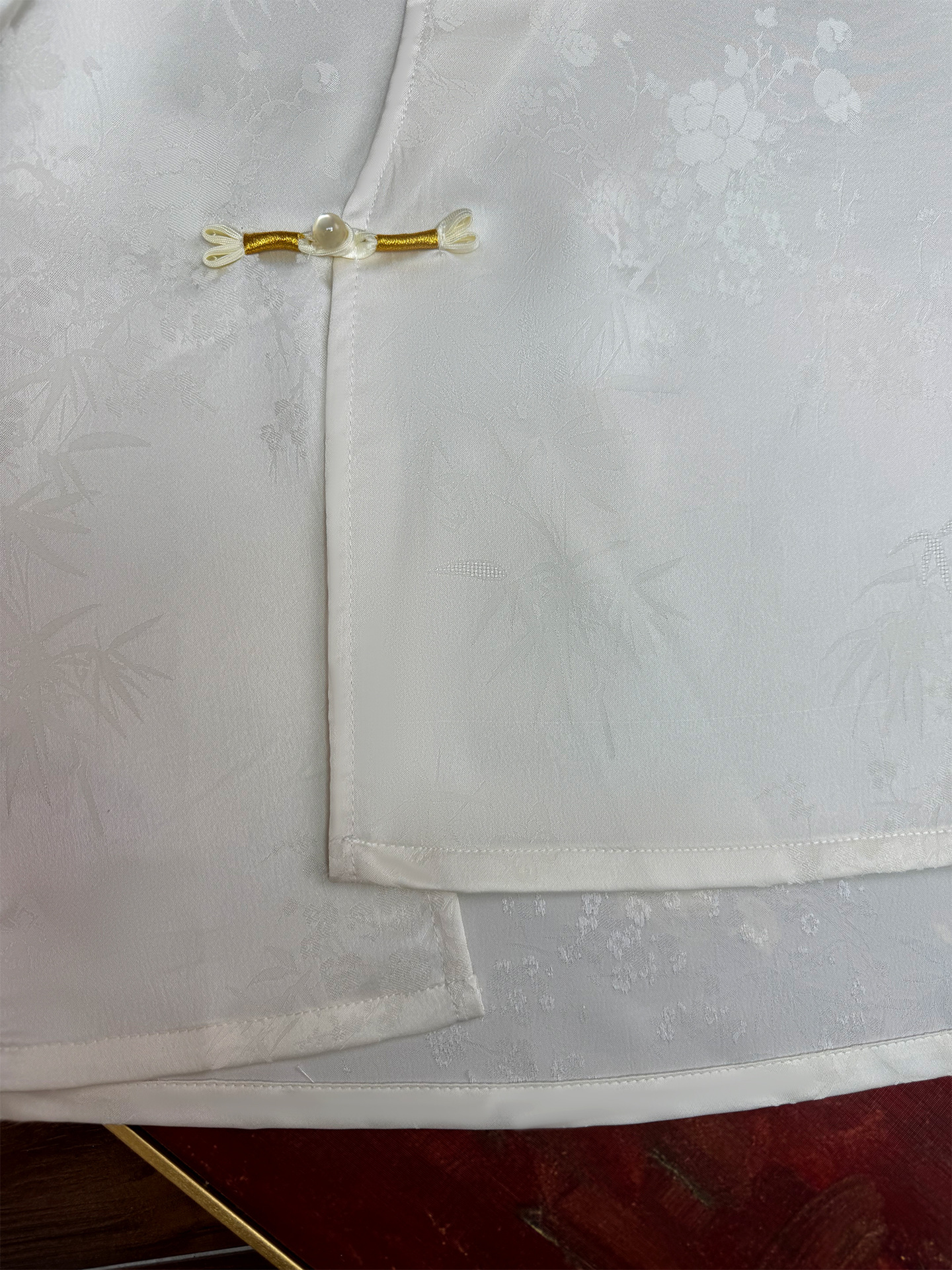 新中国式の斜め襟のジャカードのシャツは2025年の春の新型の復古の国風が見えてやせている気質の立襟のシャツの上着です。