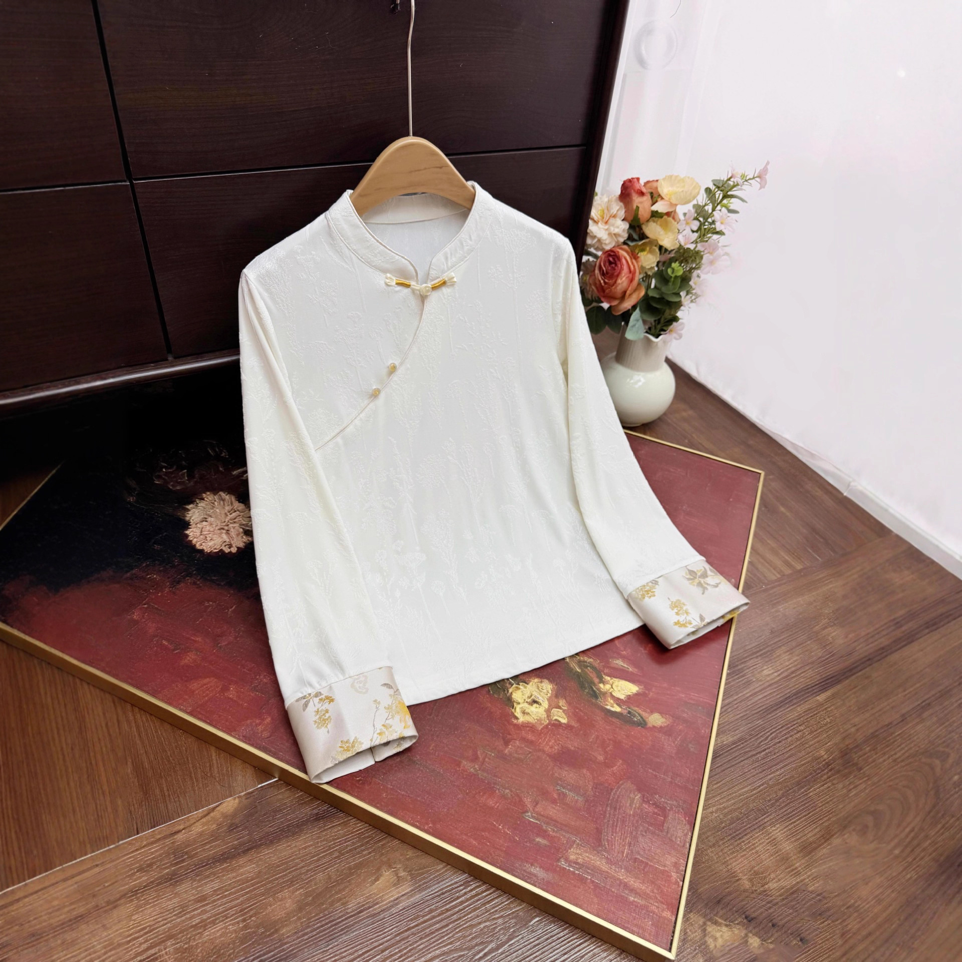 新中式国风提花打底2025秋季新款立领斜襟百搭小衫简约大方上衣女