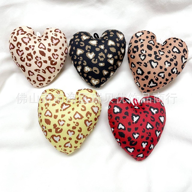 新款ins时尚卡通豹纹充棉可爱桃心饰品挂件配饰潮包潮服钥匙挂饰