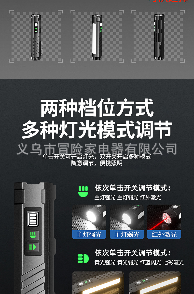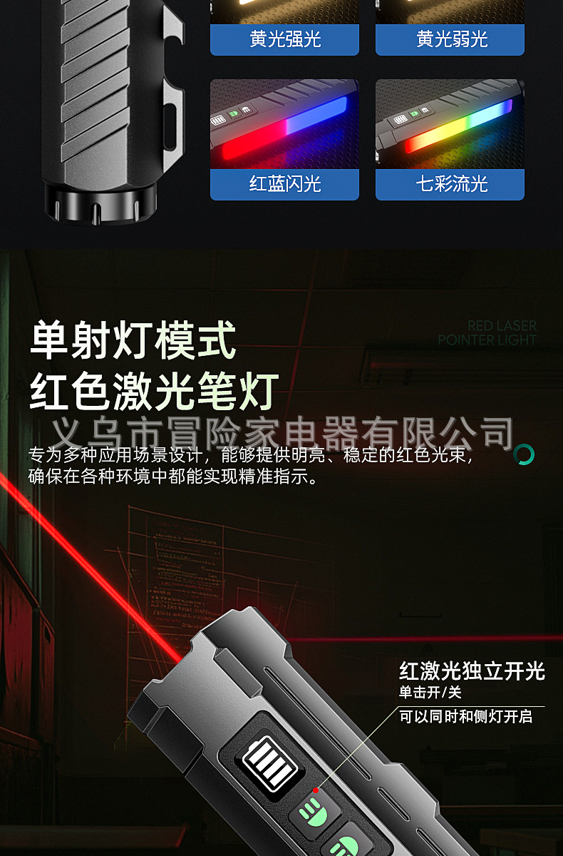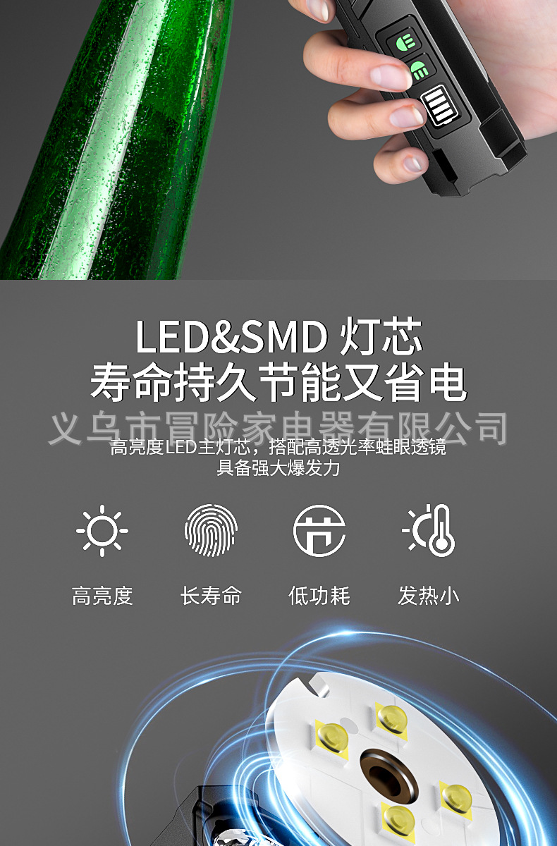 【其他功能】尾部磁吸,电量显示,开瓶器,七彩霓虹灯,红外线
