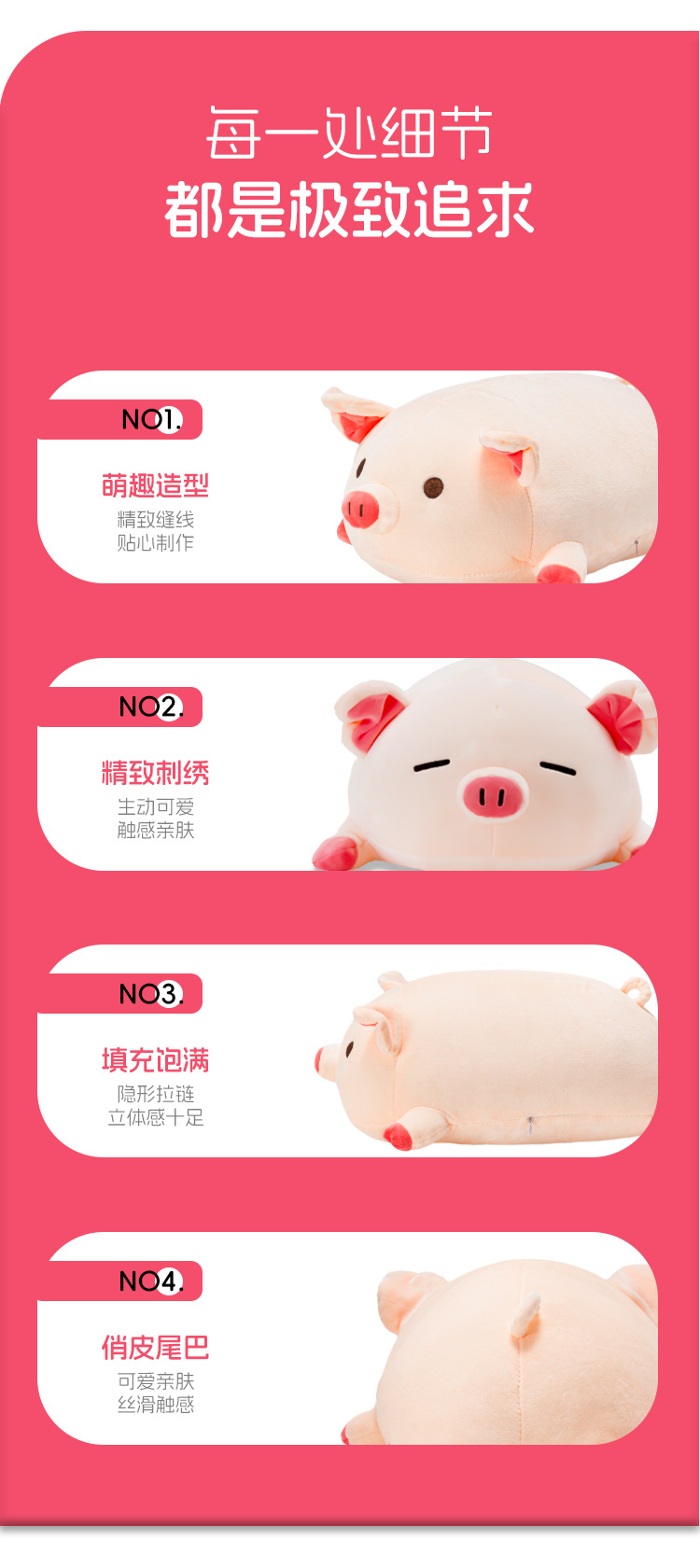 爱心尾巴猪毛绒玩具公仔趴趴猪玩偶超软睡觉抱枕床上陪睡娃娃靠垫