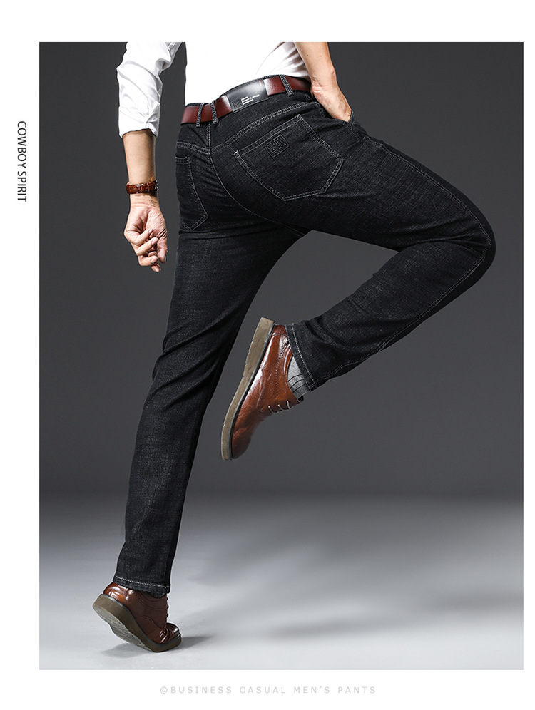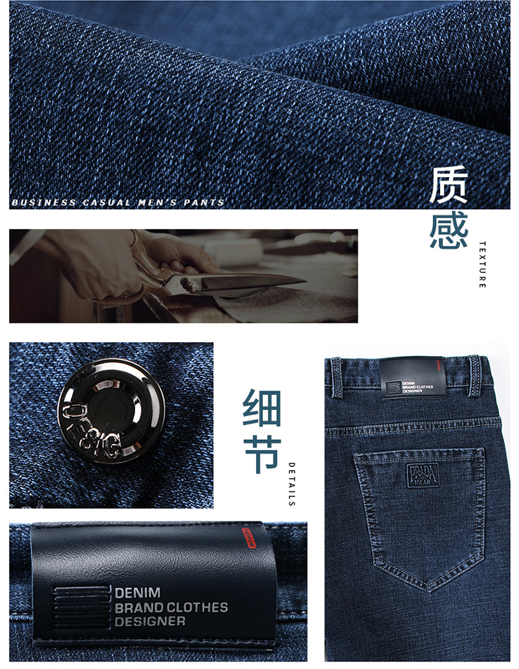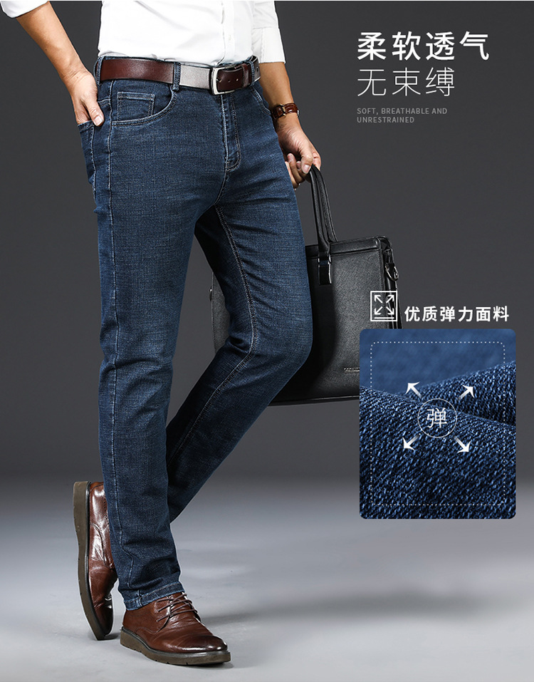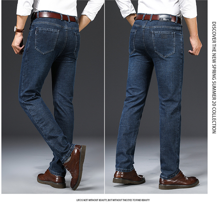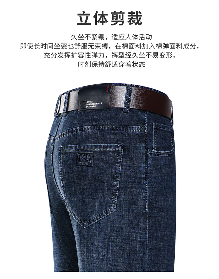 アップルストレッチジーンズ男性春夏薄手カジュアルパンツストレート高腰中年配男長ズボン
