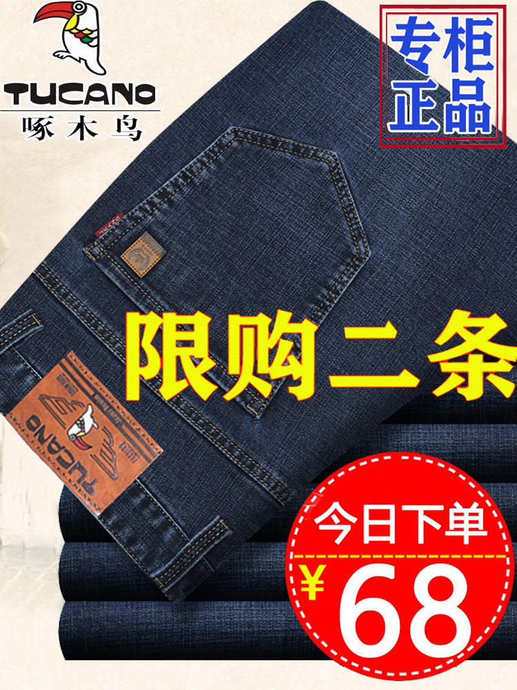 恒源祥春秋牛仔裤男宽松直筒弹力中年男士休闲裤高腰爸爸裤子薄款