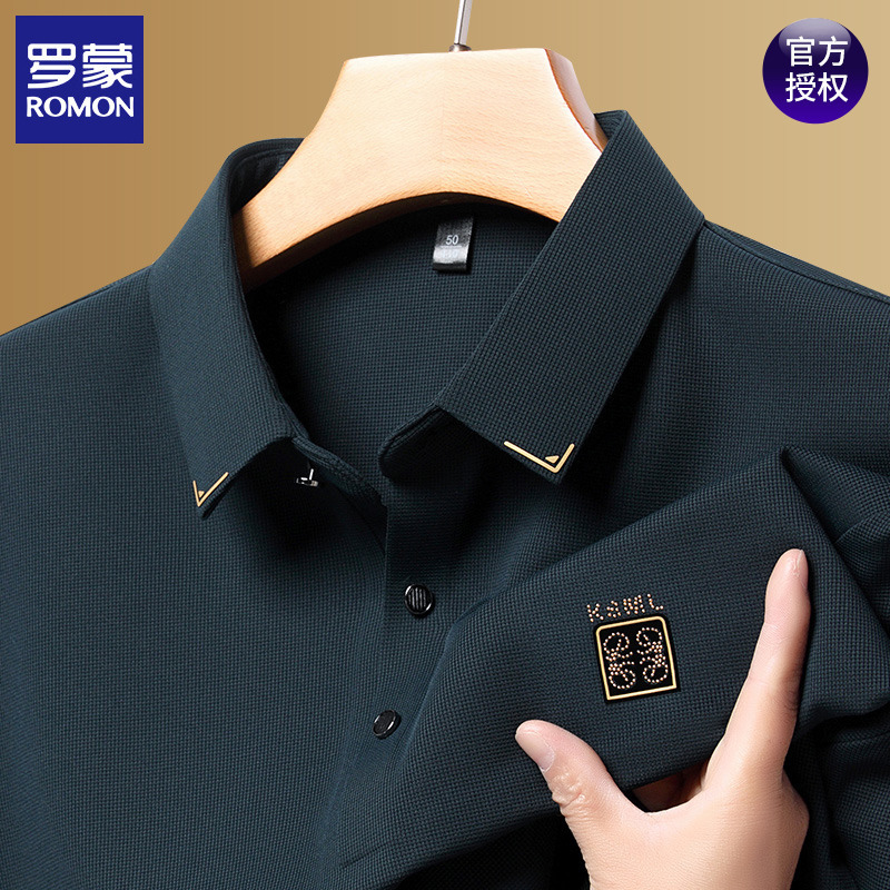 ロモン公式本物のクラシックポール半袖ポロシャツメンズ夏の新しいビジネス通気性ラペル Tシャツトレンディ