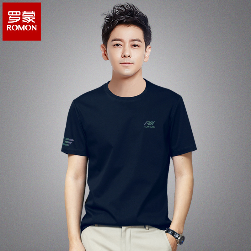 羅蒙ブランド丸首半袖tシャツ男性デザイン感小衆夏潮牌シンプル修身半袖男性服