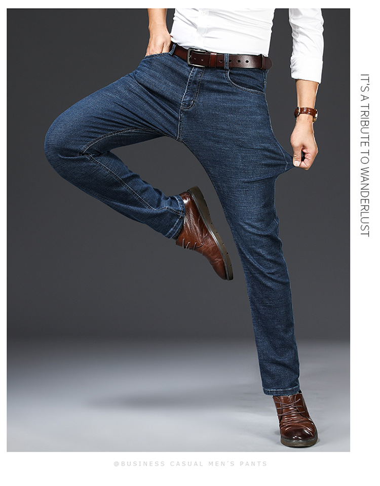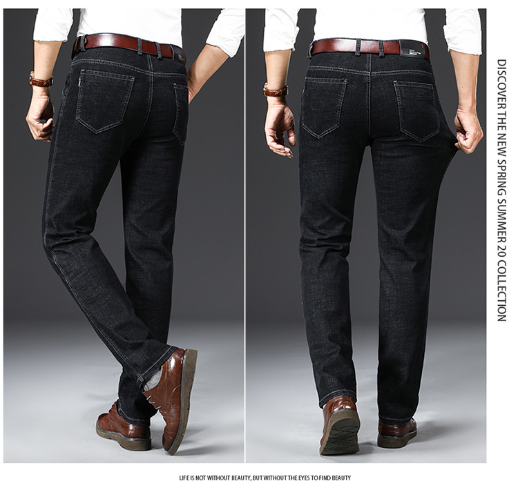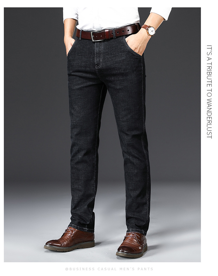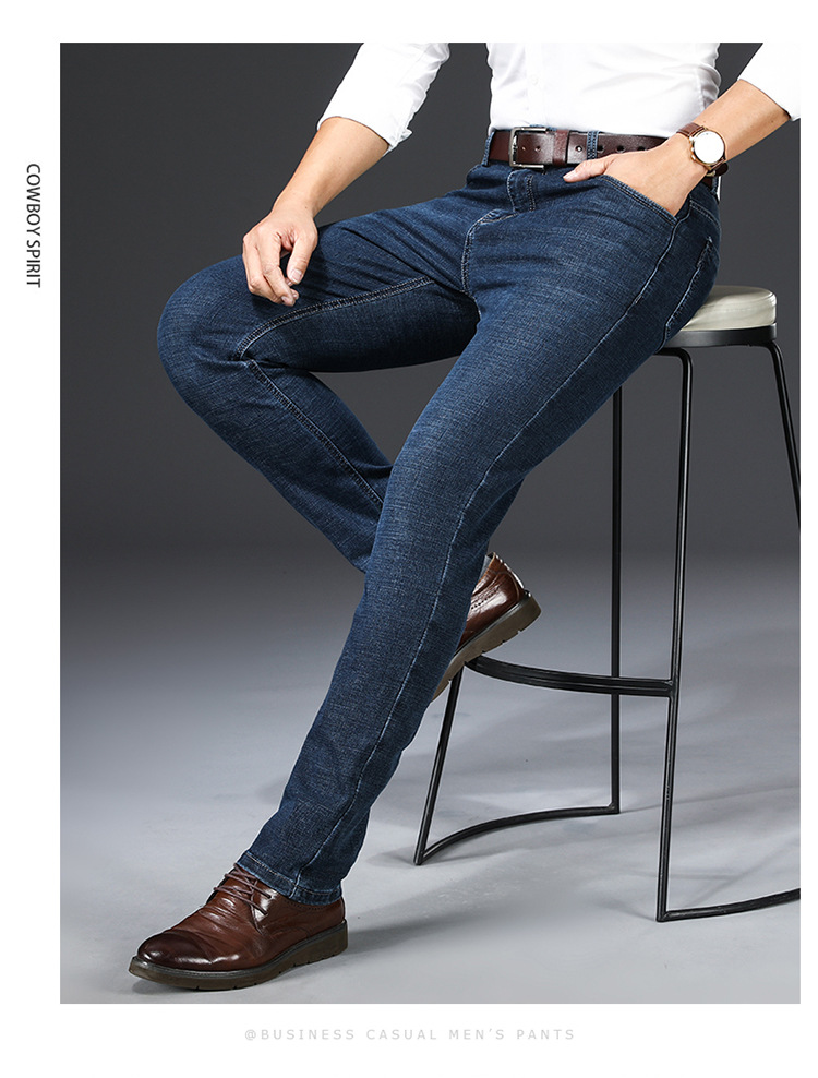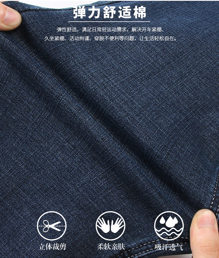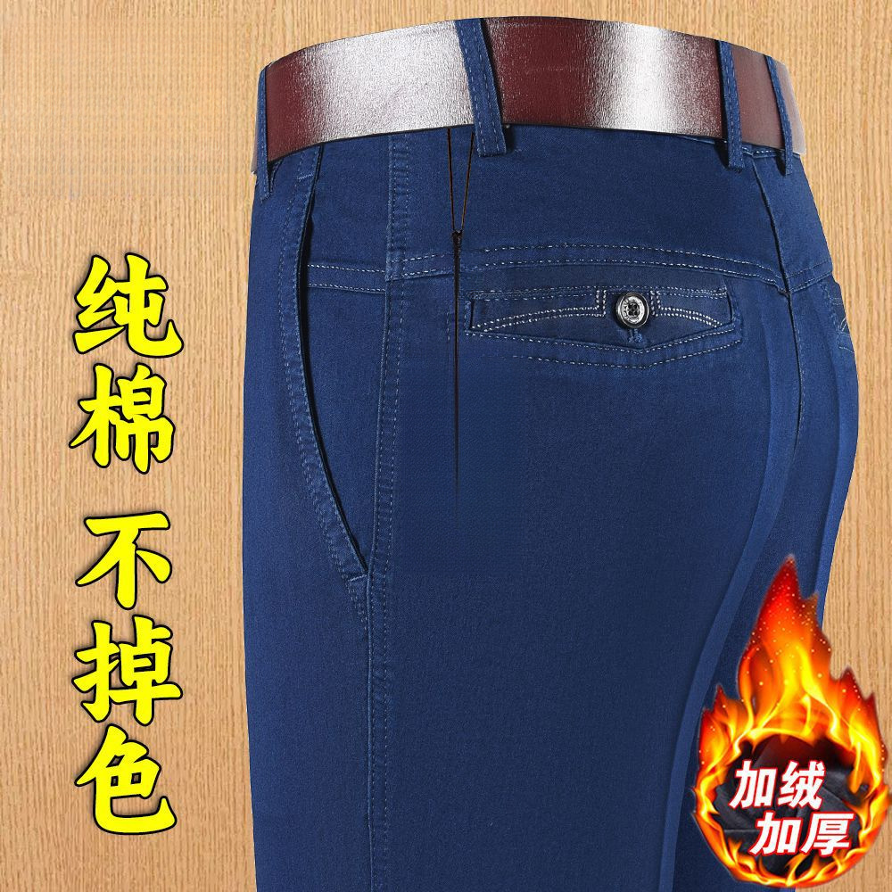 棉质弹力男士牛仔裤高腰中年宽松休闲直筒加绒加厚爸爸男裤