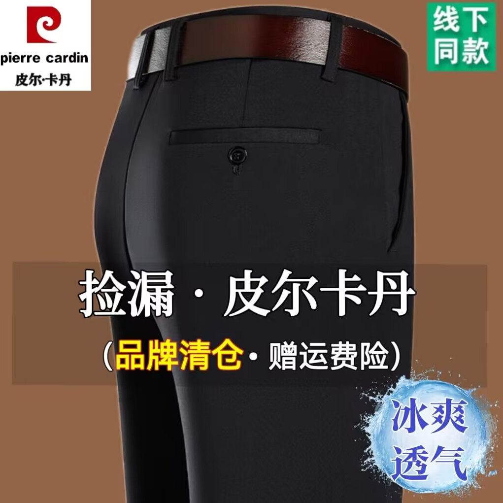 ピエールカルダン夏アイスシルク薄いメンズストレッチカジュアルパンツルーズストレートメンズパンツ中年ハイウエストパンツ