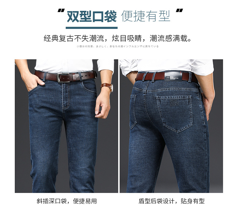苹果弹力牛仔裤宽松休闲裤直筒高腰中老年男长裤牛仔裤男款
