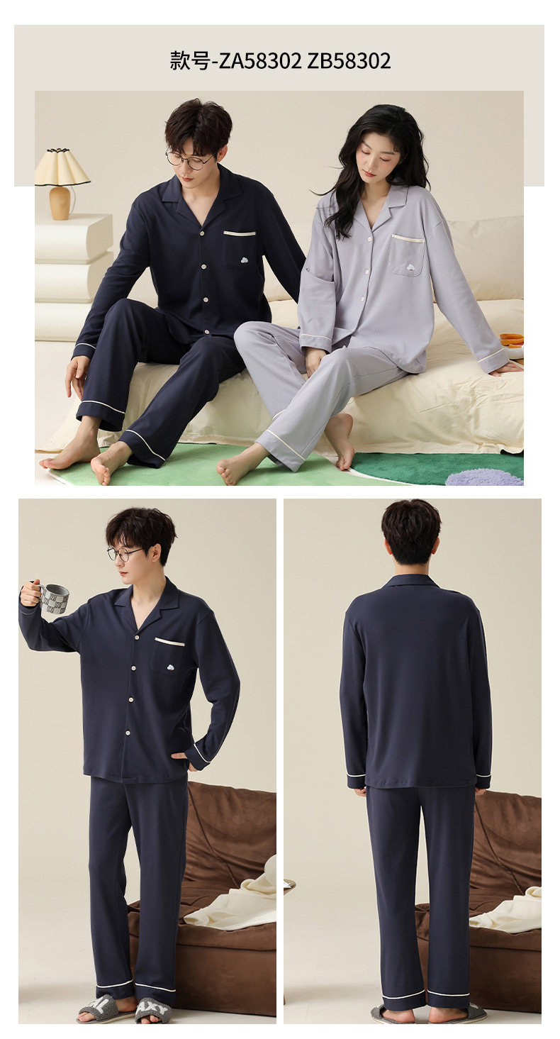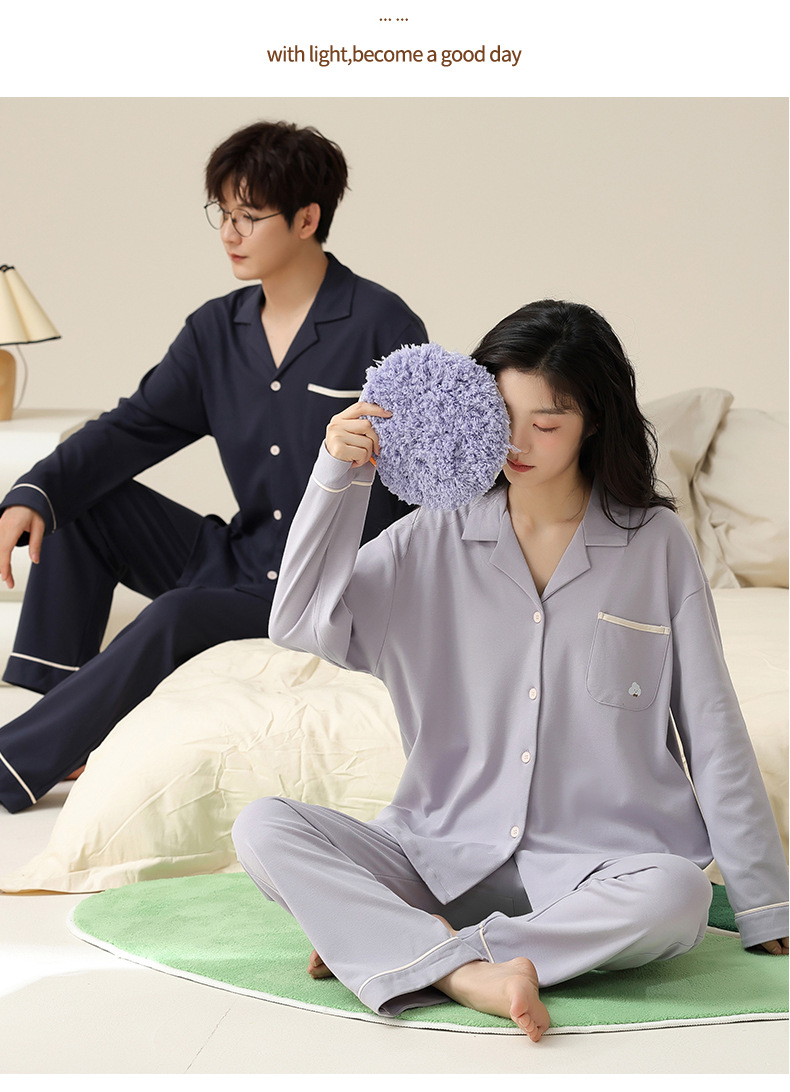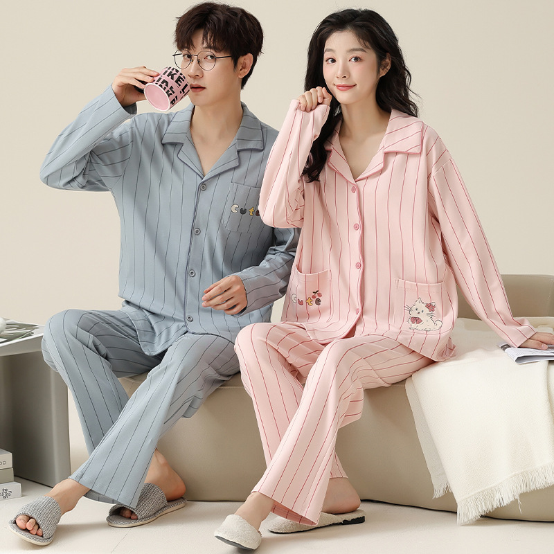 春と秋の純綿カップルパジャマ