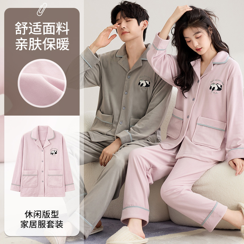 カップルのパジャマの女性の海島のベルベットの襟のベルベットの厚いサンゴのベルベット2024冬の新商品の冬の家の服