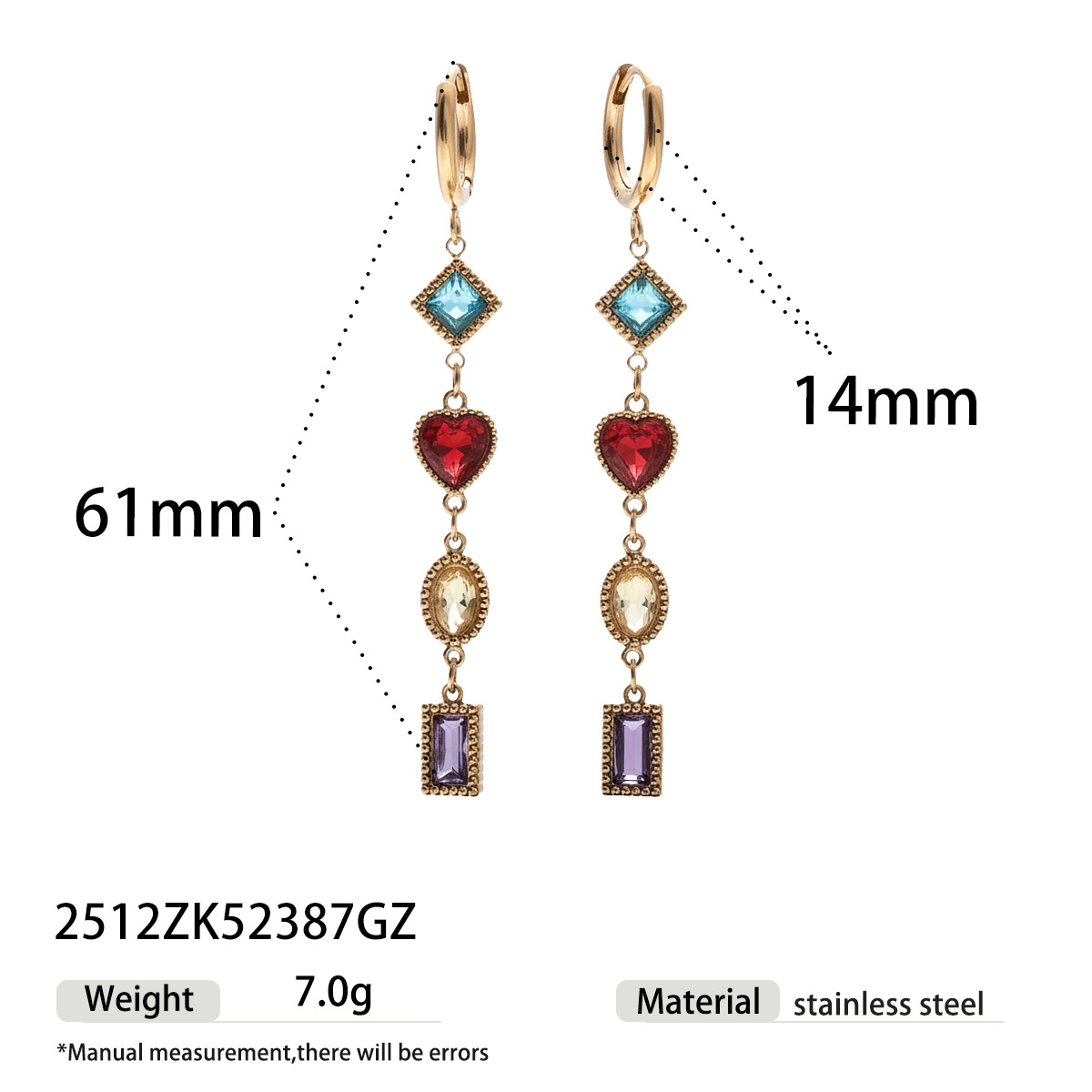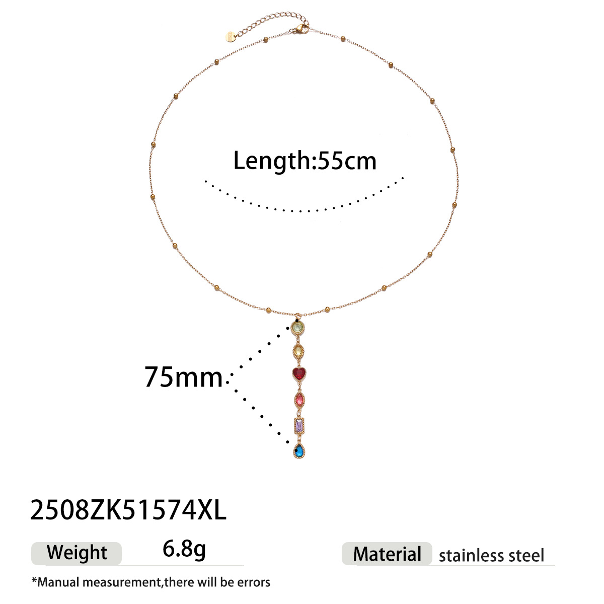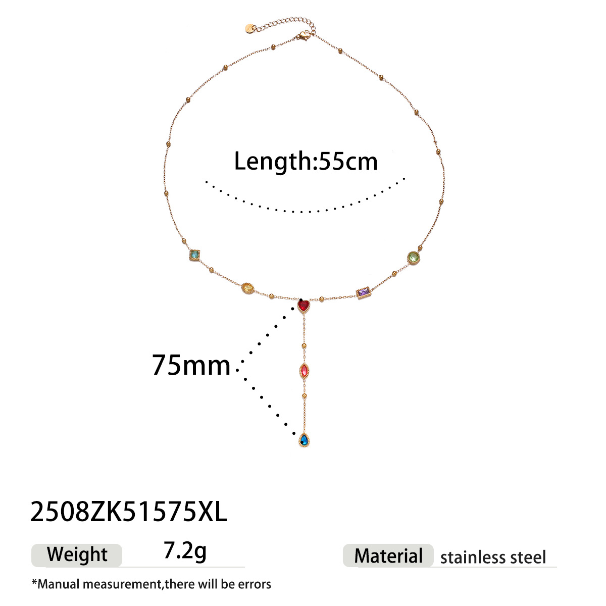 泰娜欧美跨境不锈钢彩色锆石流苏项链轻奢长吊坠贸易链钛钢不掉色
