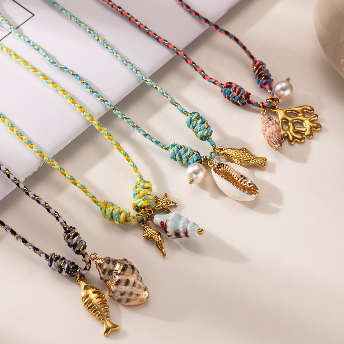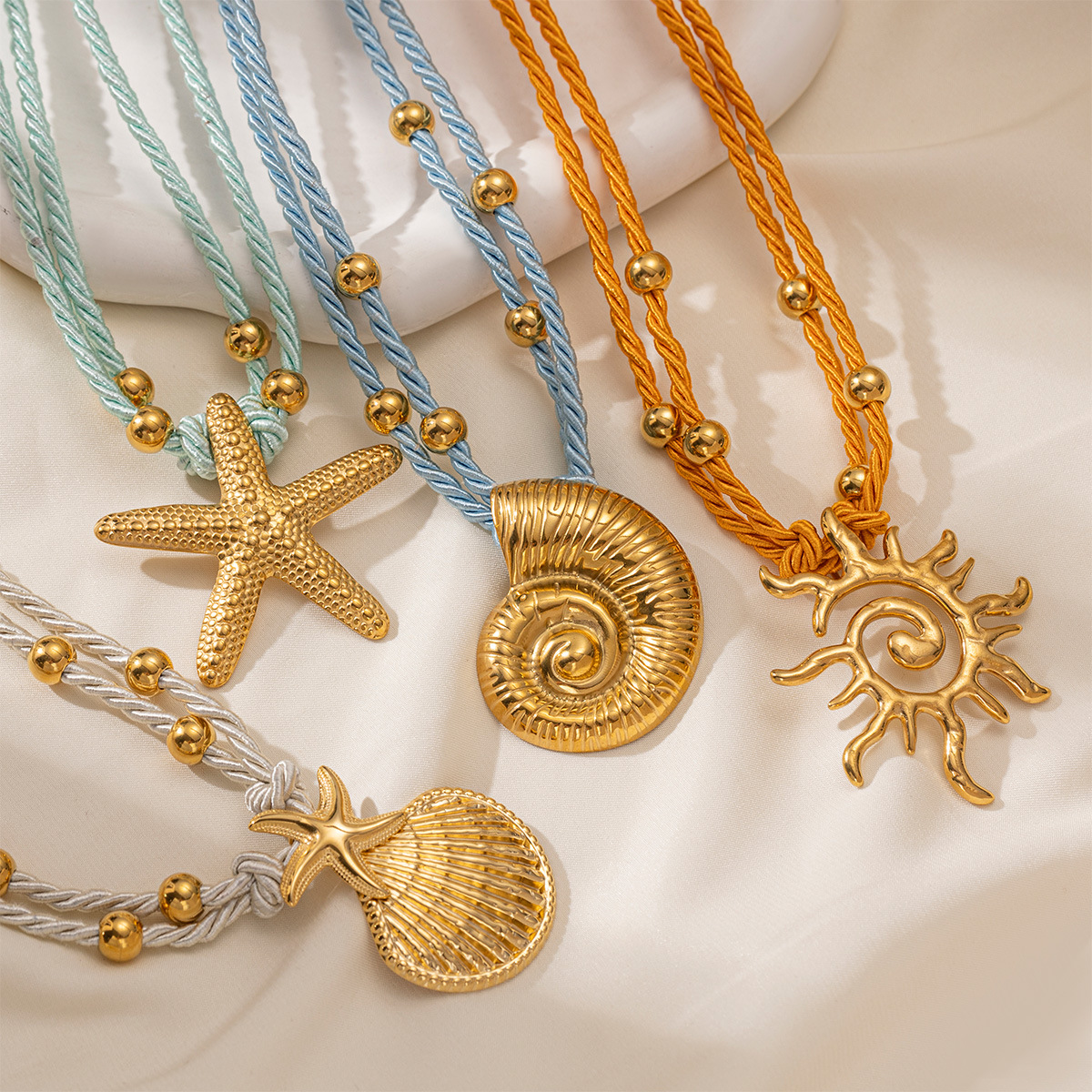 Taina ヨーロッパとアメリカのステンレス鋼のネックレス、シンプルでハイエンドの海洋要素シェルカラーロープペンダントネックレスジュエリー