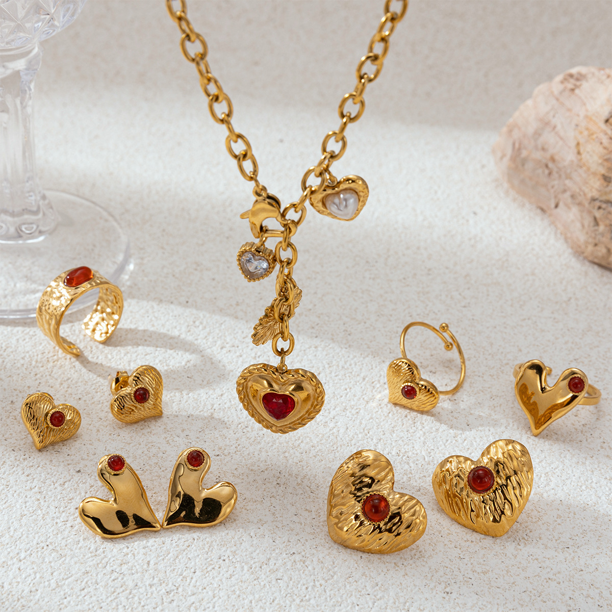 泰娜欧美不锈钢项链轻奢小众爱心红玛瑙首饰品套装项链钛钢不掉色