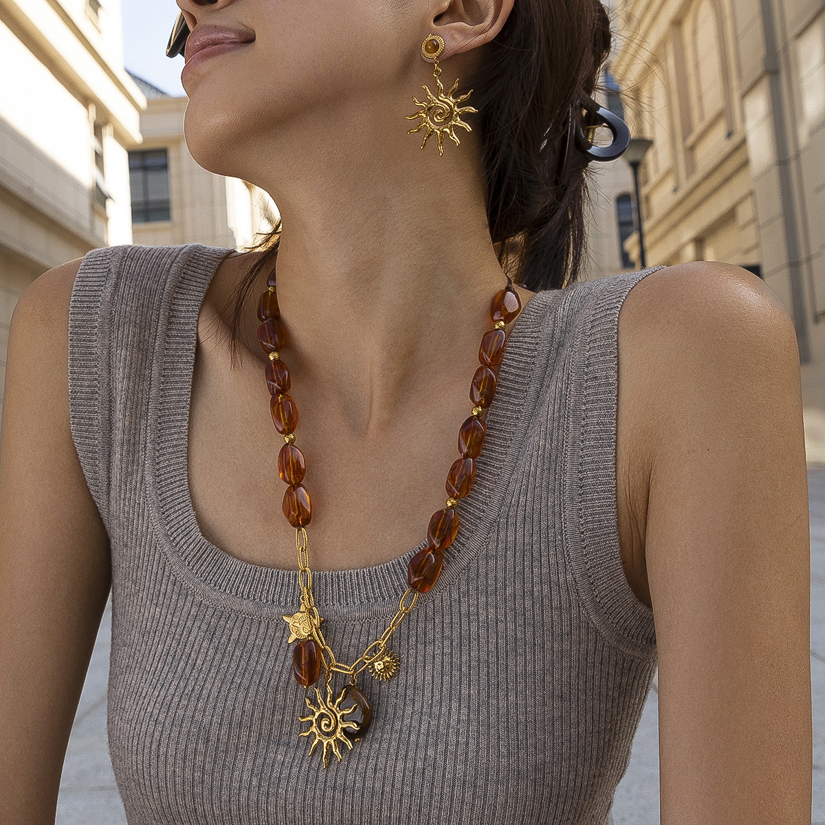 泰娜欧美不锈钢太阳吊坠项链轻奢高级感亚克力串珠编绳项链锁骨链
