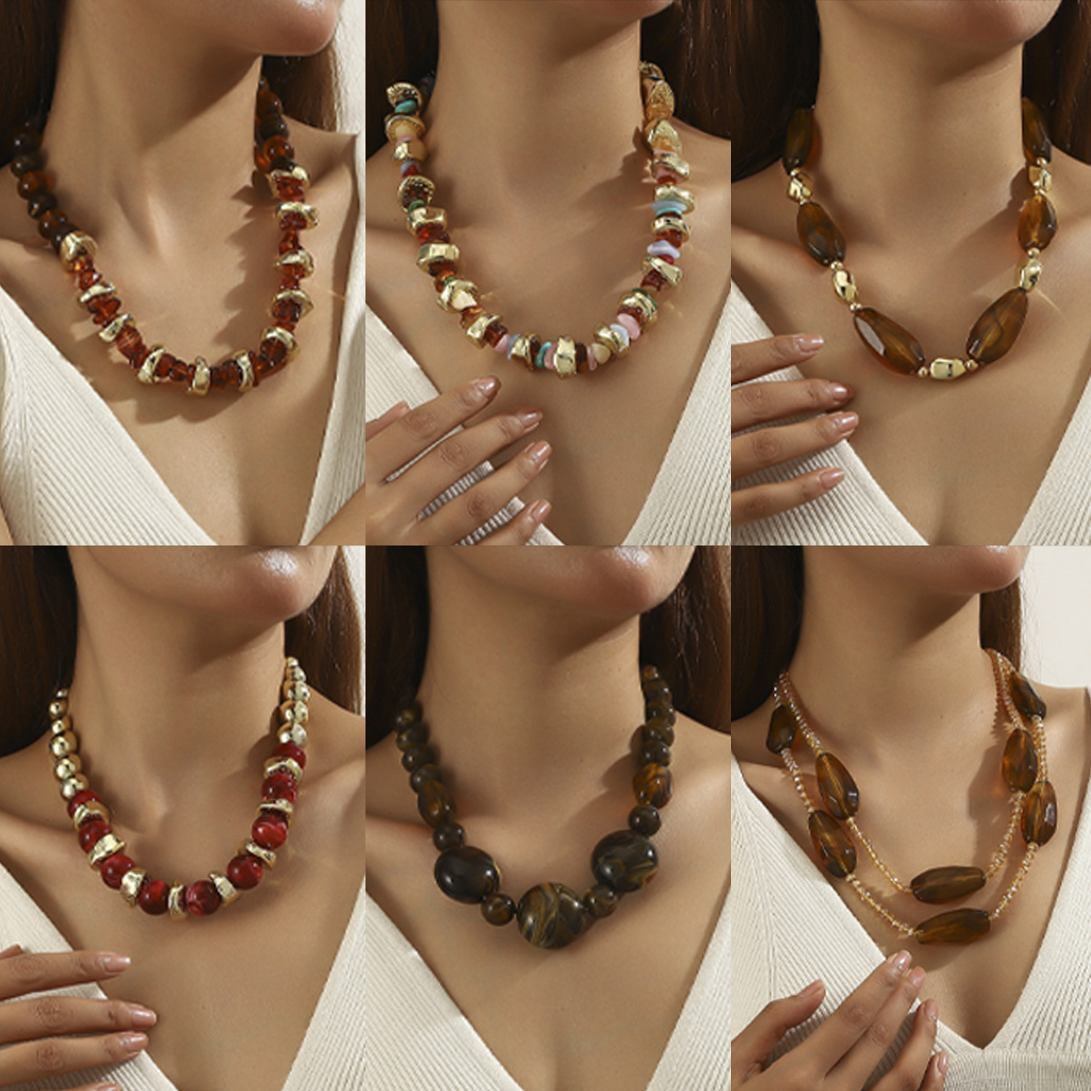 欧美新品树脂串珠项链夸张时尚锁骨链金色搭配彩色珠高级感个性百