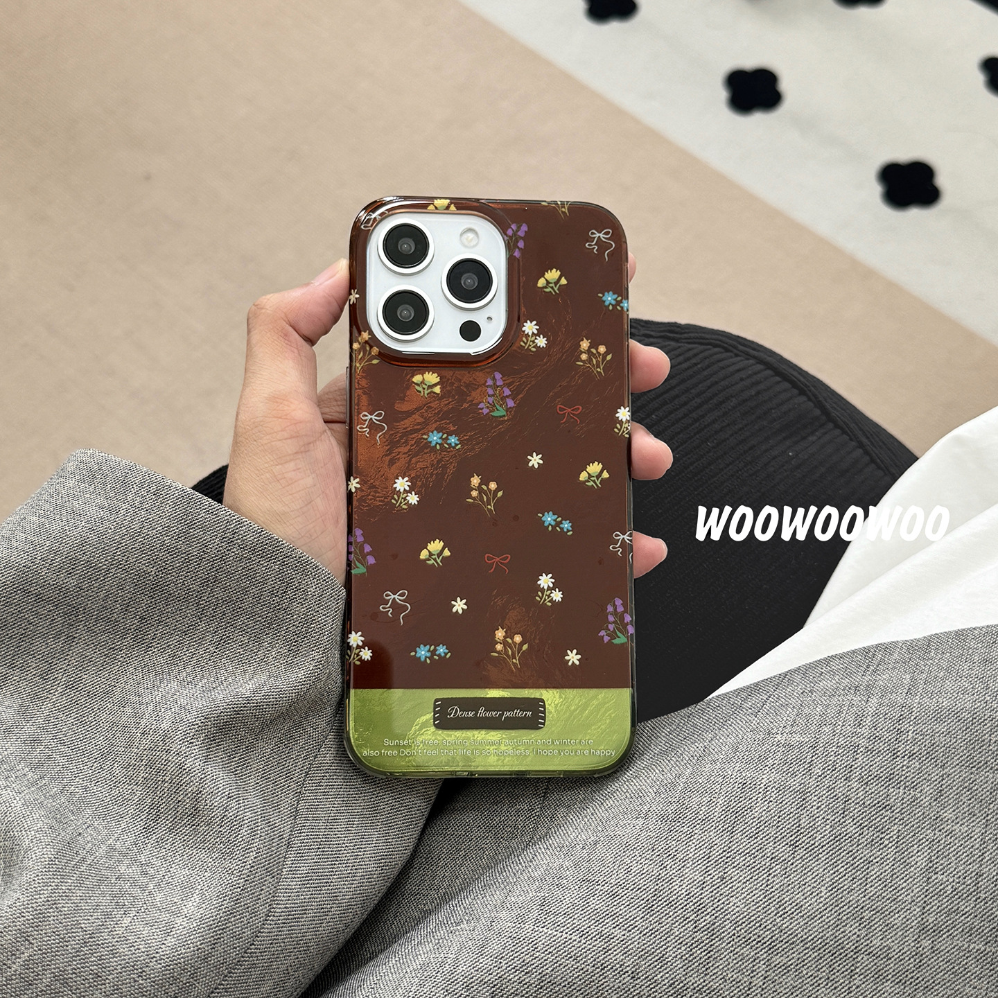 WOOWOOWOO小衆秋冬レトロ茶色花二重錫紙紋適用リンゴ16携帯ケースiphon
