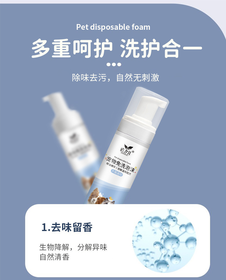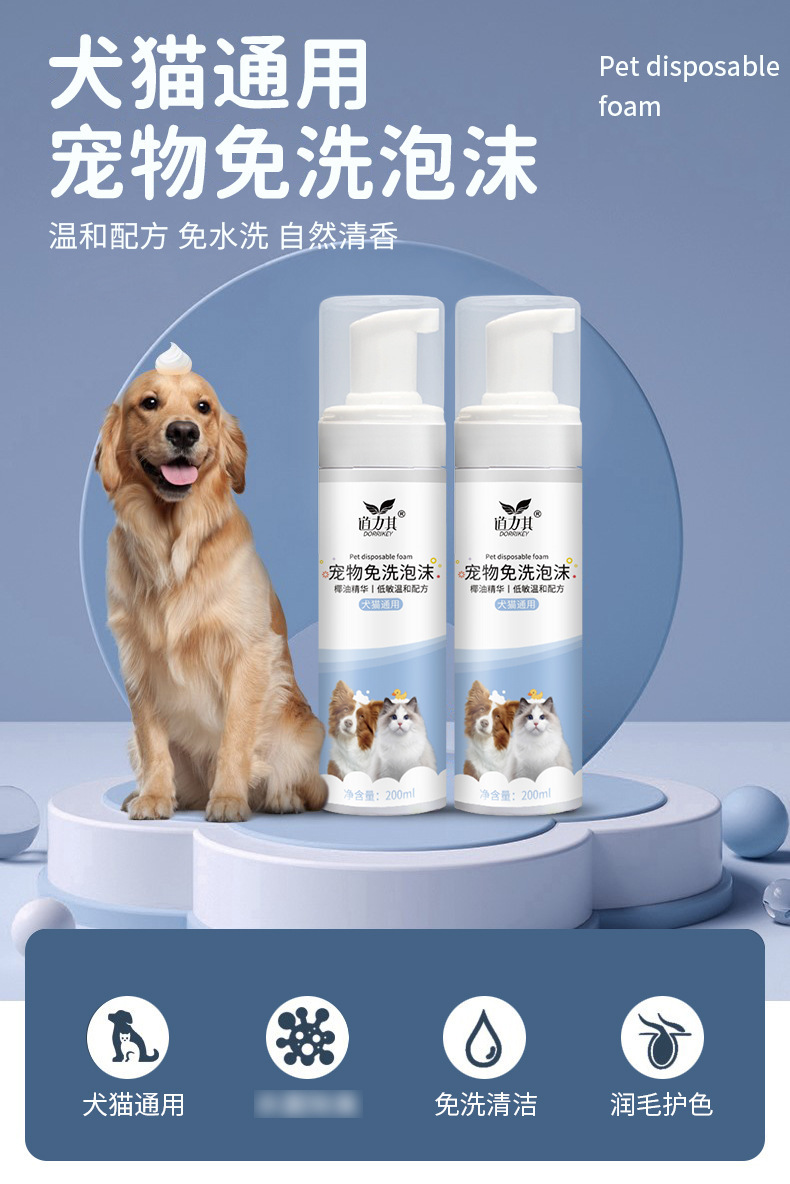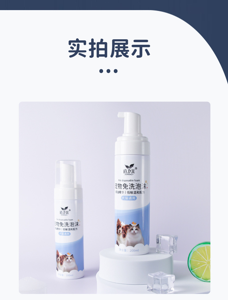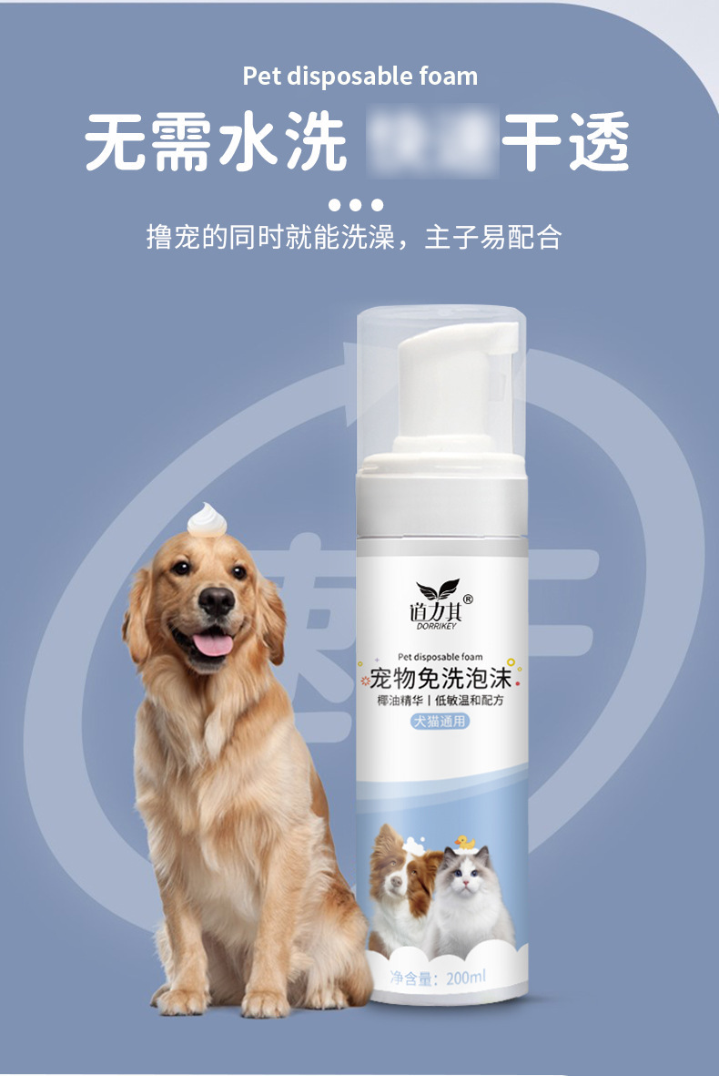 道力其宠物免洗泡沫200ml 狗狗沐浴露洗护去污 猫咪香波慕斯浴液