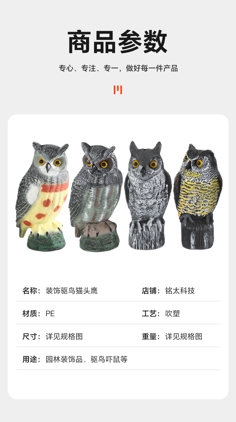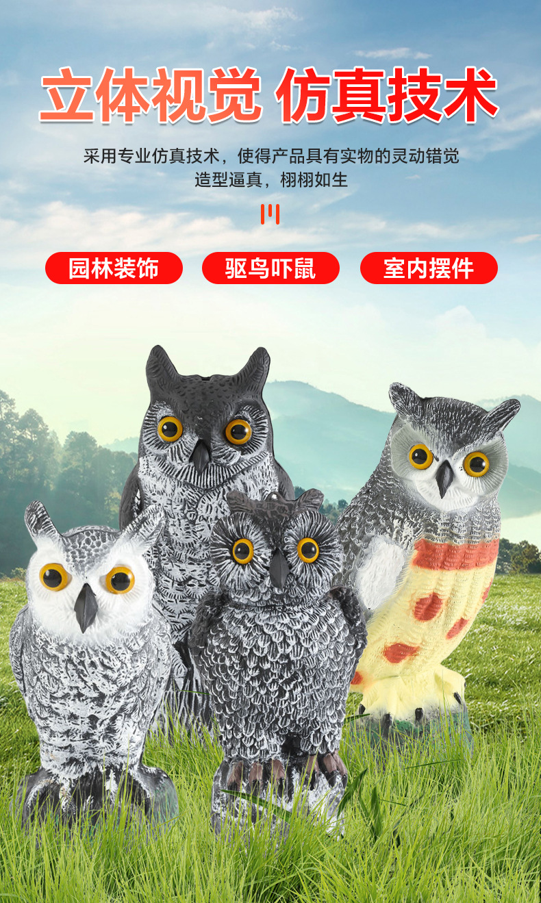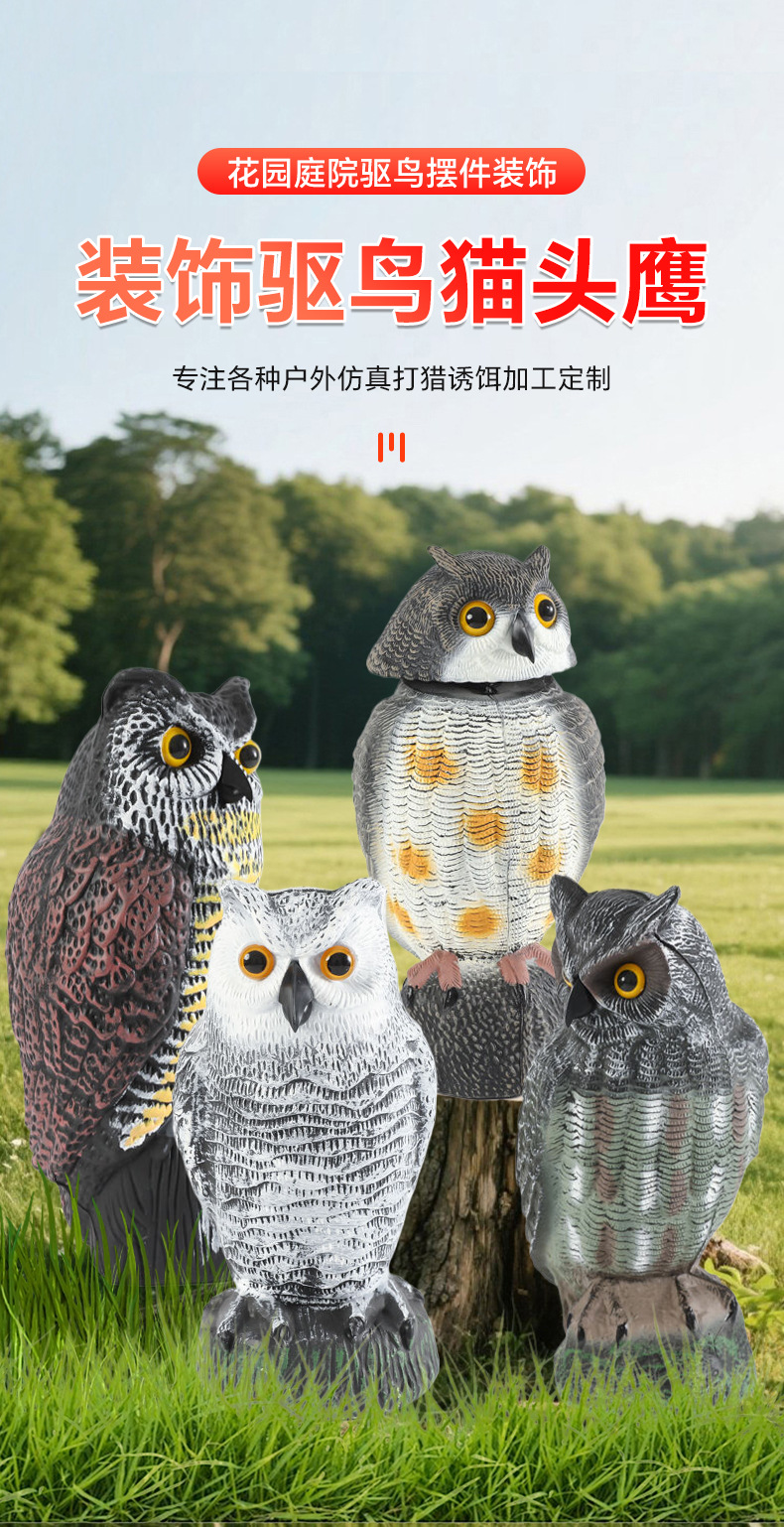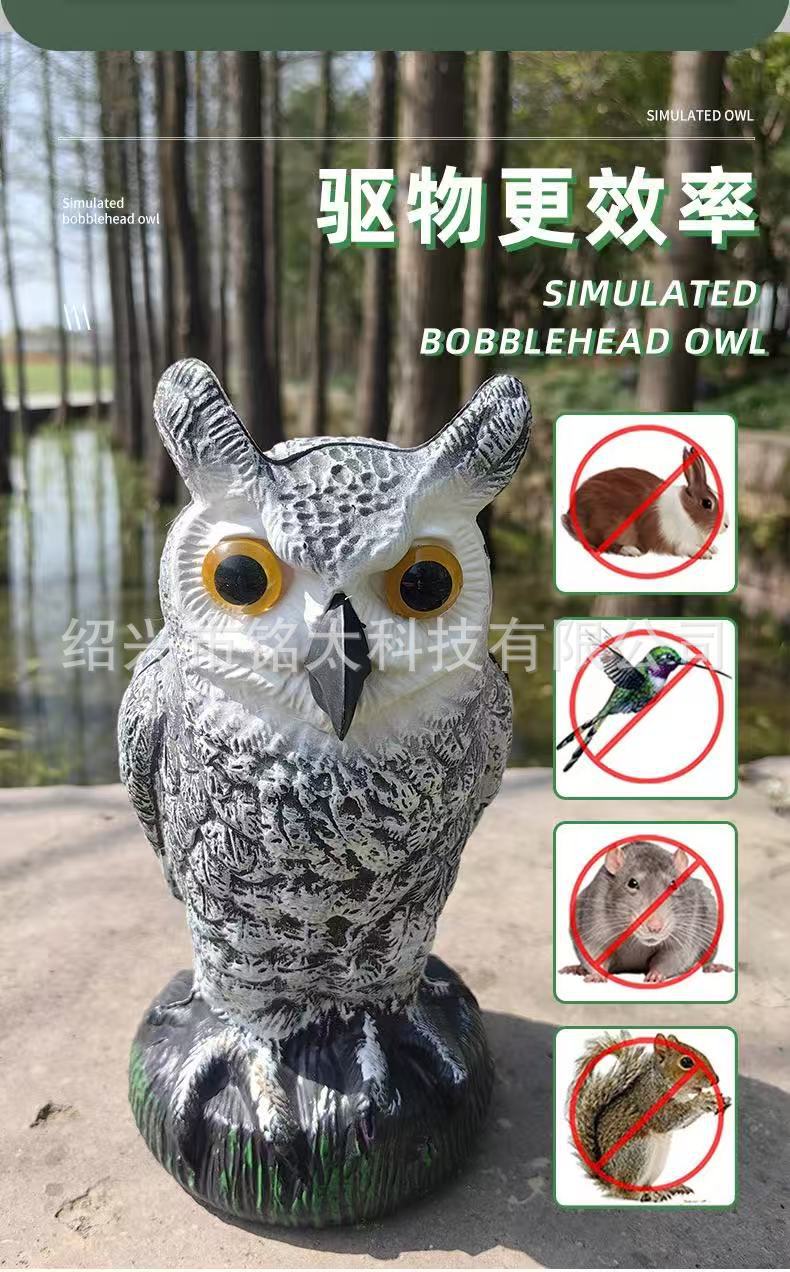 仿真猫头鹰摇头摆件吓鸟驱鼠园林装饰品可摇头动物假鸟诱饵工艺品