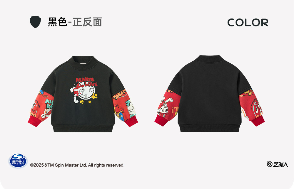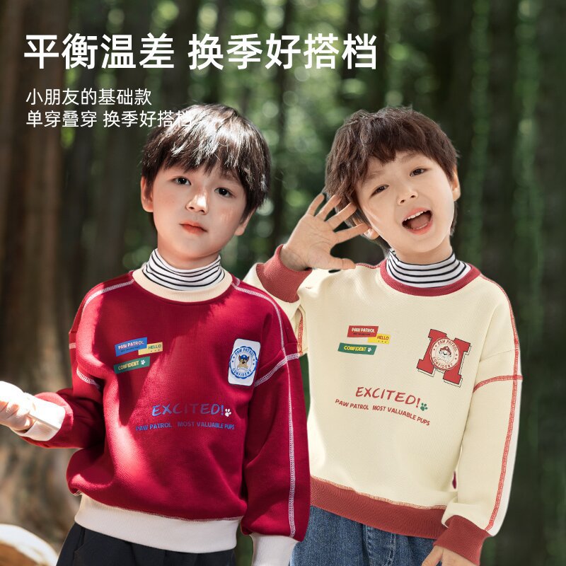 パウ・パトロール 子供用スウェットシャツ 裏起毛 秋冬モデル 男の子 女の子 厚手 タートルネック スウェットシャツ フェイクツーピーストップス バイカラー袖