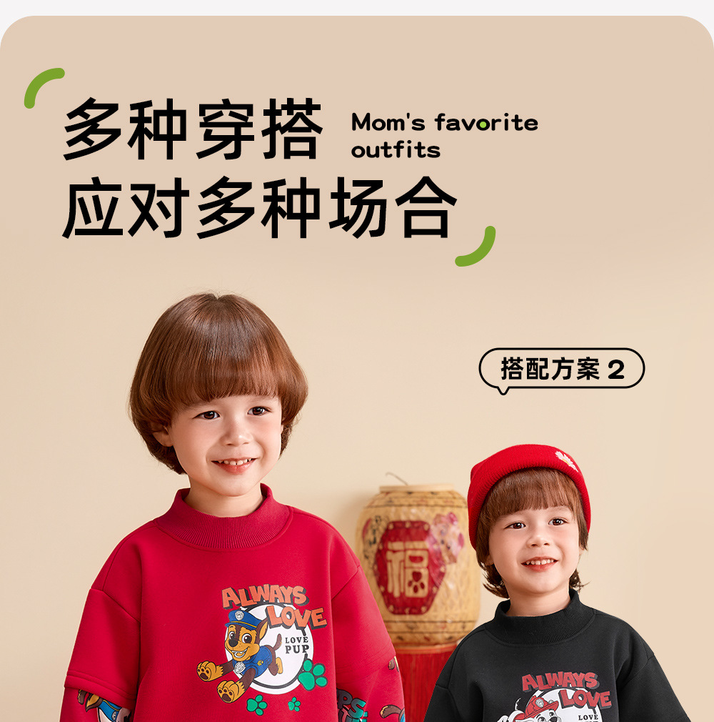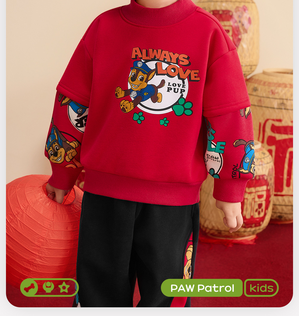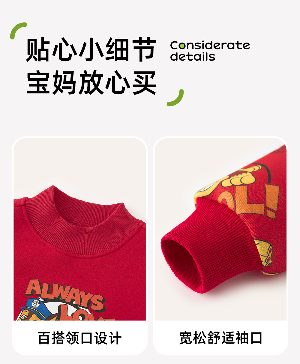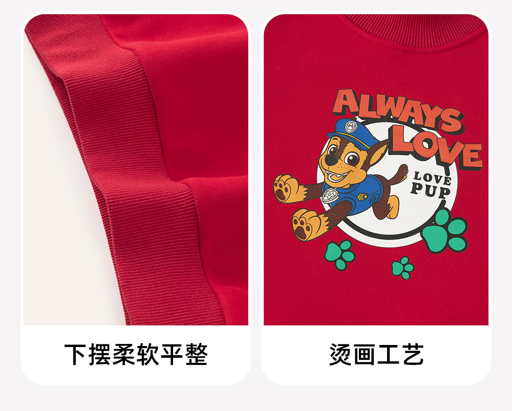 汪汪队儿童卫衣加绒圆领上衣红色年装秋冬新款男女中小童装潮