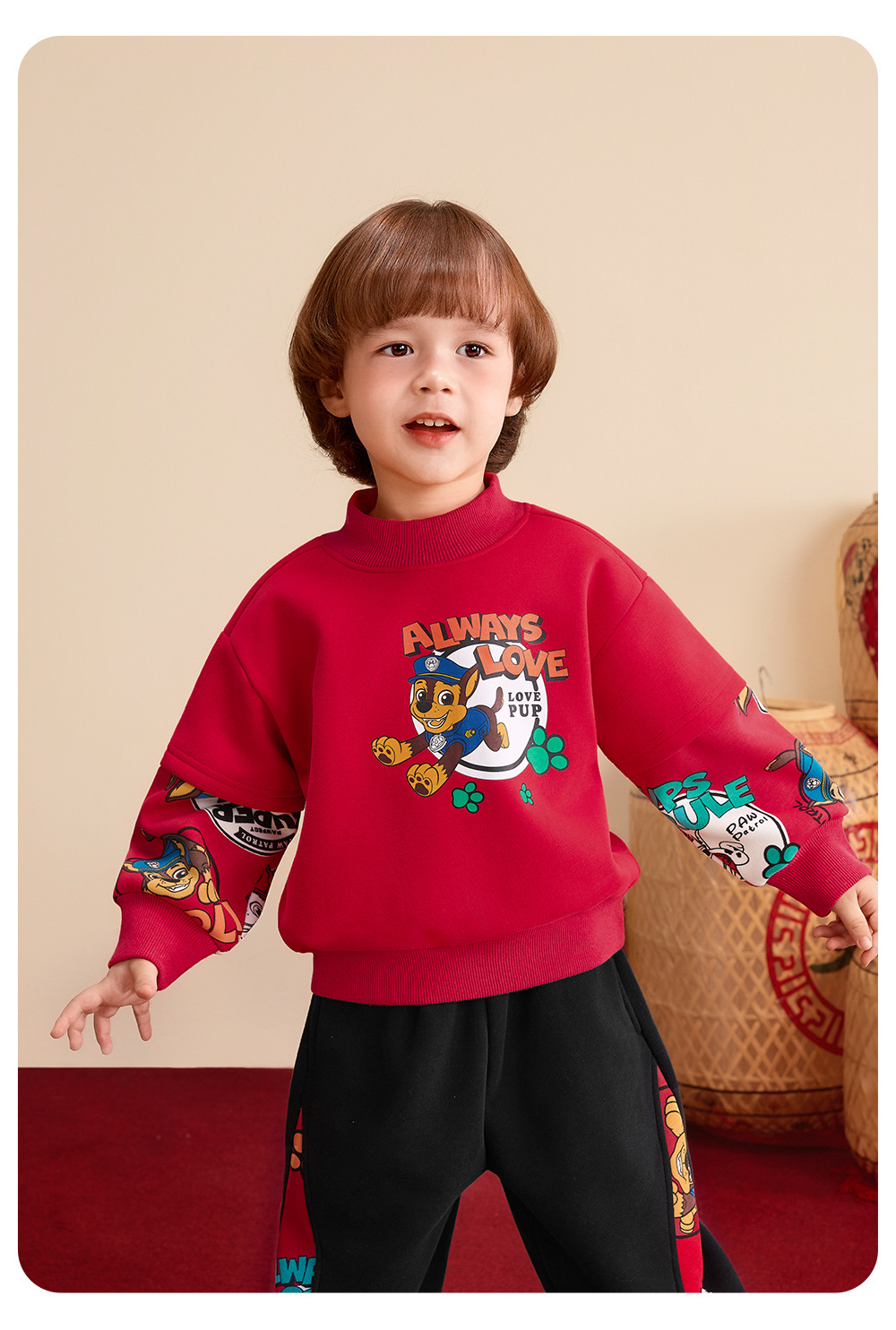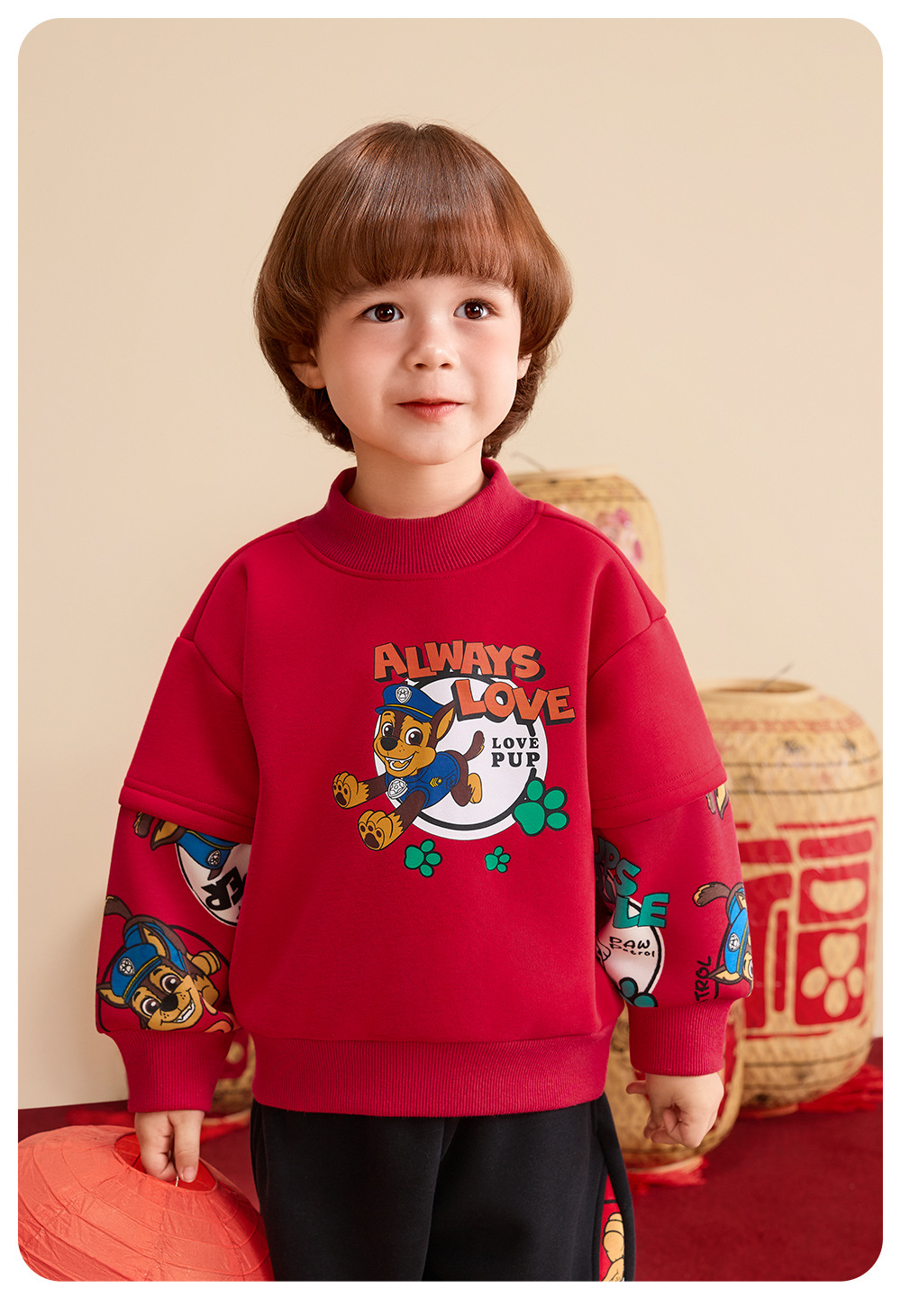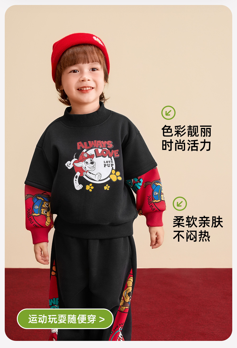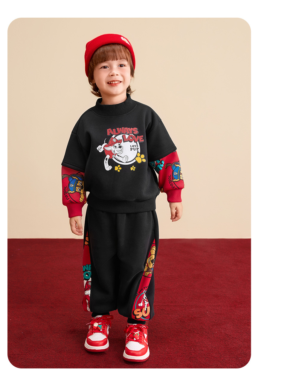 汪汪队儿童卫衣加绒圆领上衣红色年装秋冬新款男女中小童装潮