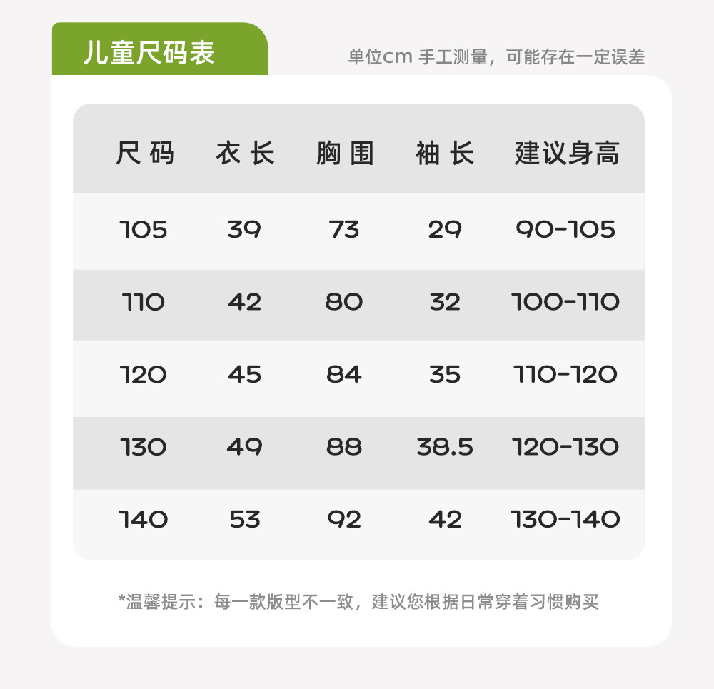 适合身高 105cm,110cm,120cm,130cm,140cm