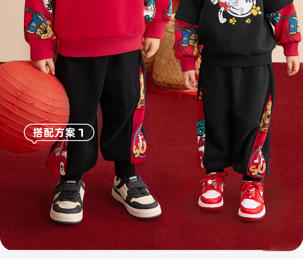 汪汪队儿童加绒裤子宝宝拜年服男孩冬装运动休闲裤秋冬新款年服裤