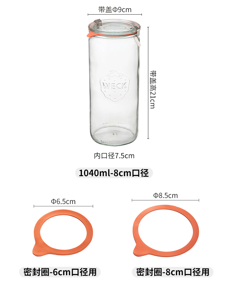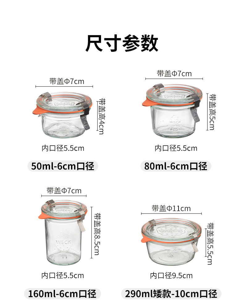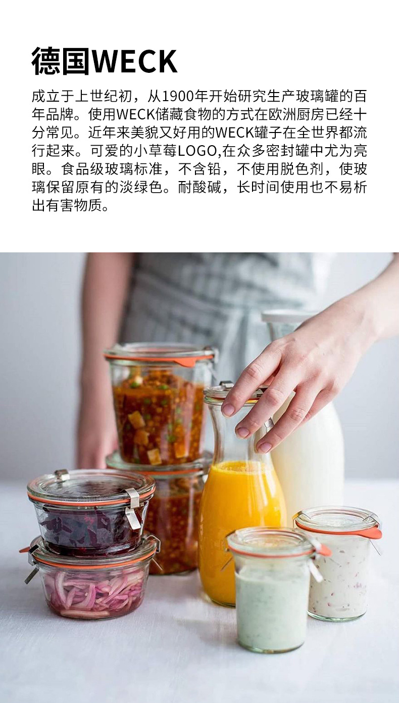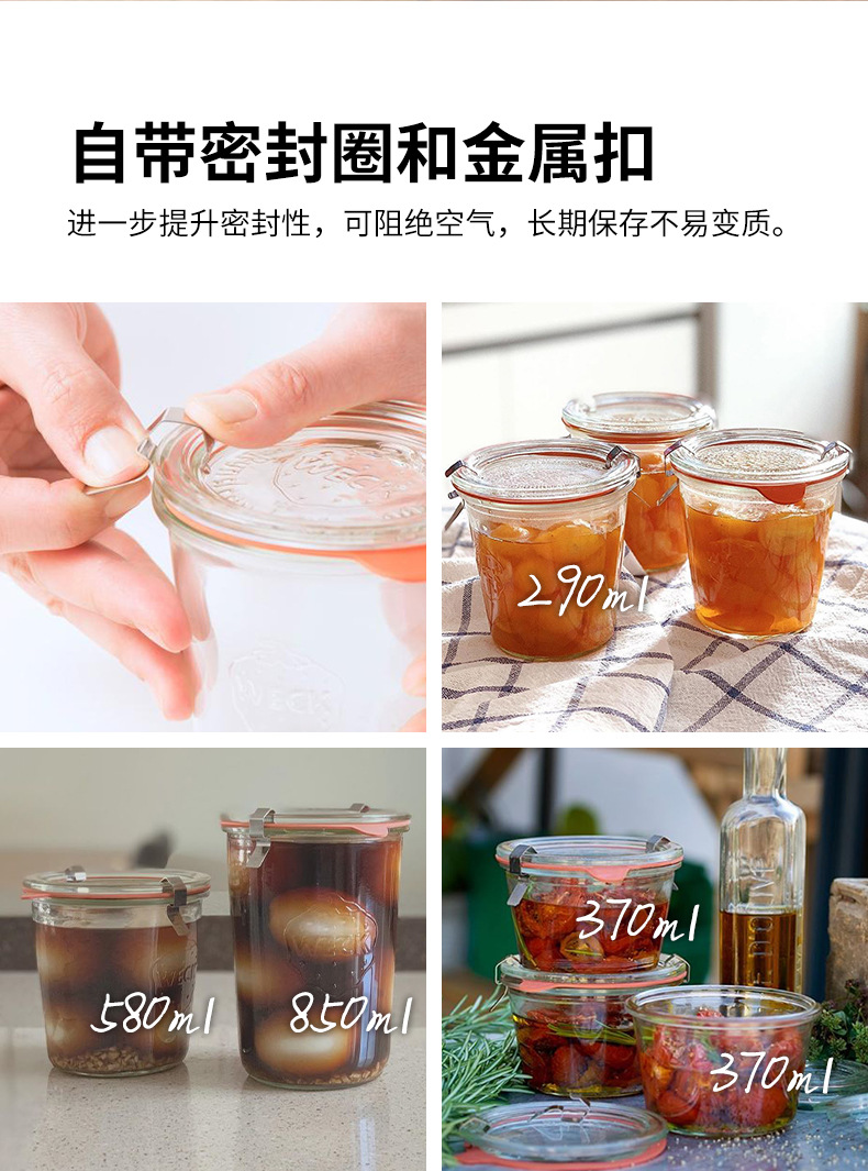 德国进口weck mold食级玻璃密封罐玻璃瓶蜂蜜酸奶果酱瓶储物罐