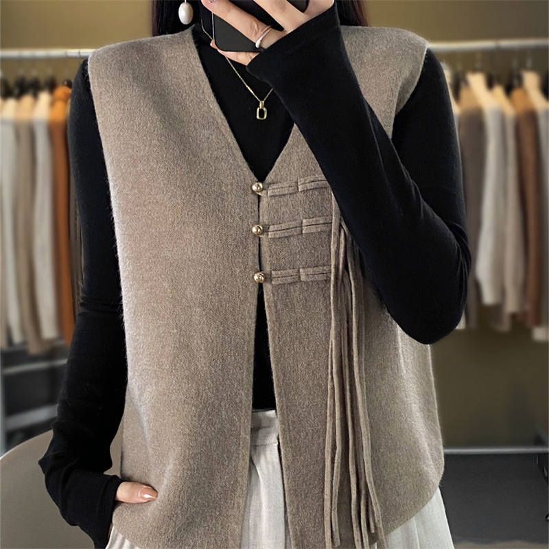 現物秋冬新作vネックニットベスト新中国式カンフーベスト