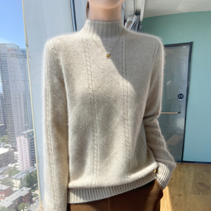 2024年秋冬向け、女性用ハーフタートルネックニットインナー、大きいサイズ、ゆったりとしたジャカード織り長袖通勤風セーター