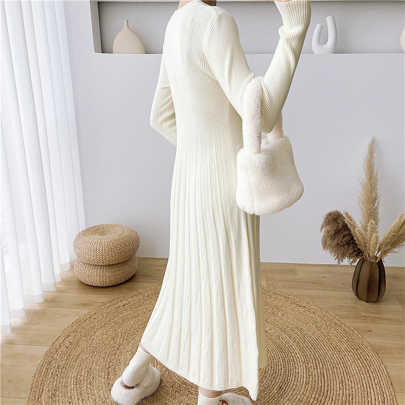 配大衣内搭打底毛衣长裙子女秋冬长袖小香风针织连衣裙年新款