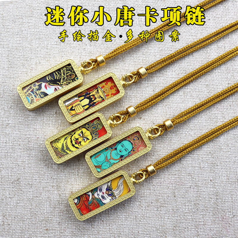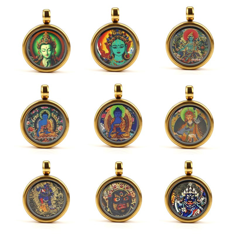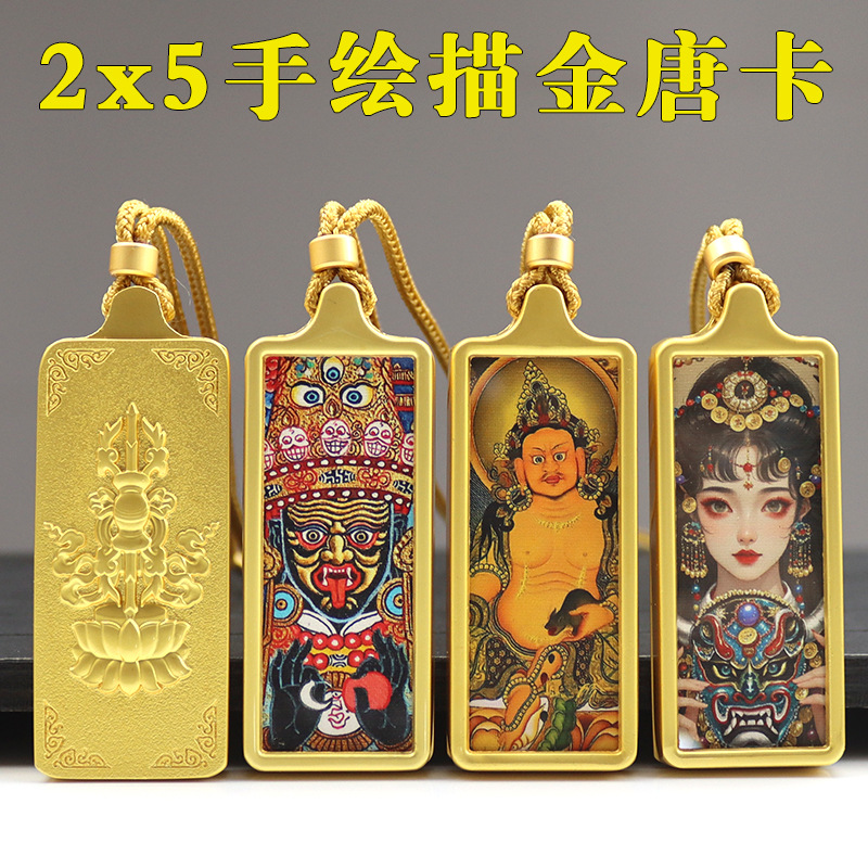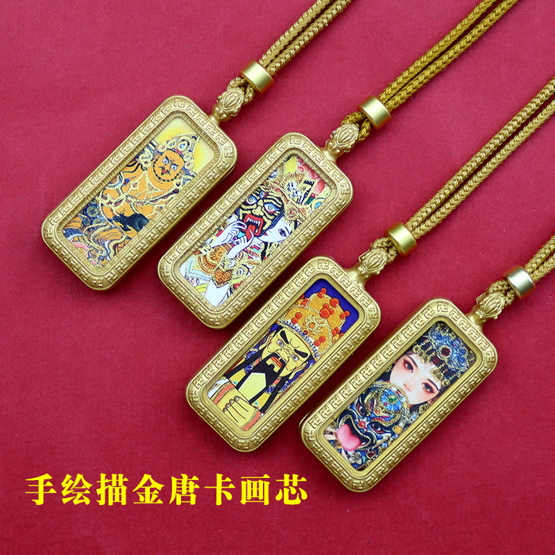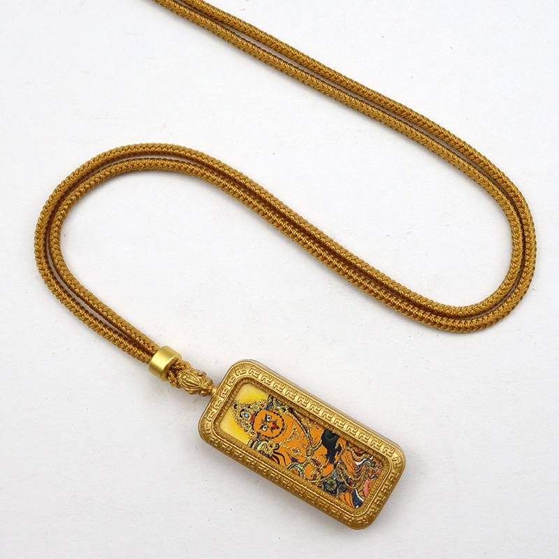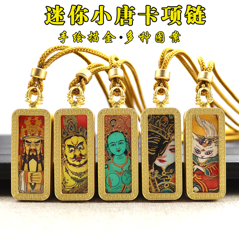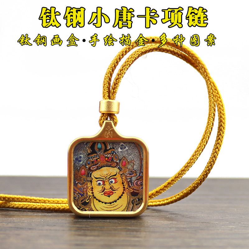 藏式小唐卡吊坠手绘描金八大守护神佛牌黄财神扎基拉姆挂件项链